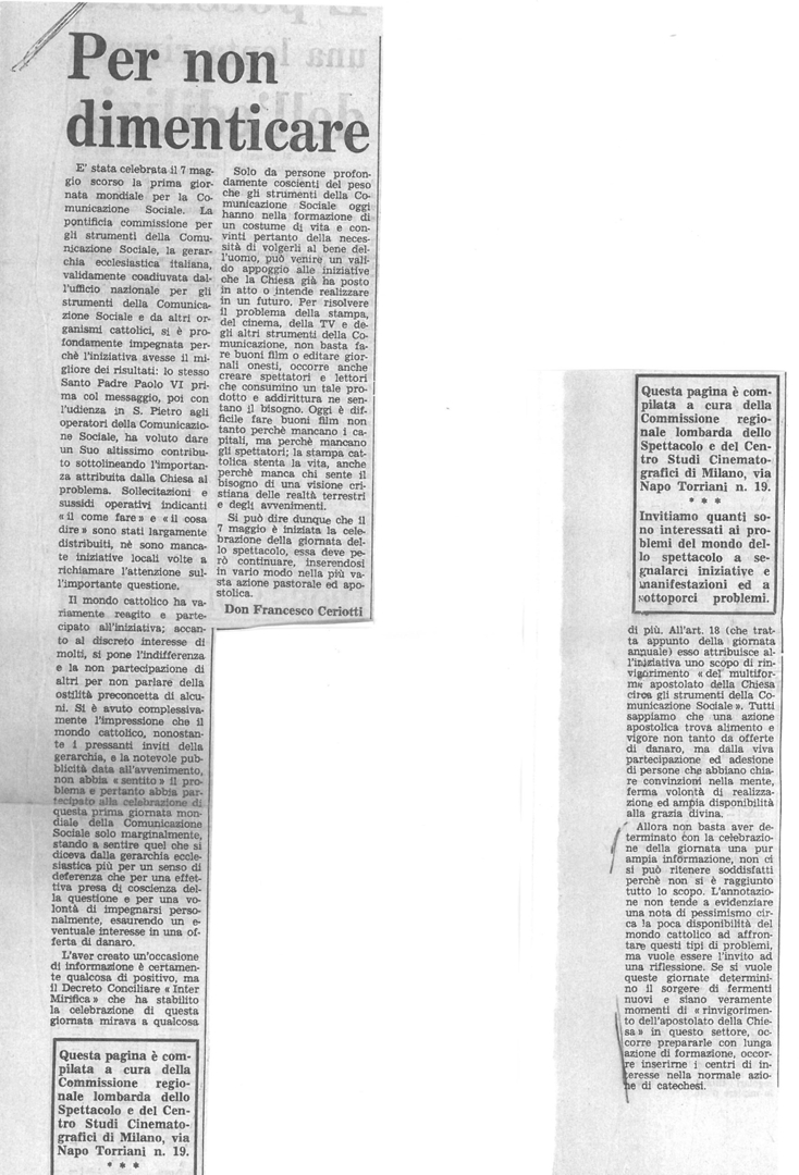 | Temi (keywords PRIN 2012) | Pontificia Commissione per la Cinematografia didattica e religiosa (poi per la Cinematografia Radio e Televisione, poi per le Comunicazioni Sociali) editoria e stampa cattolica |