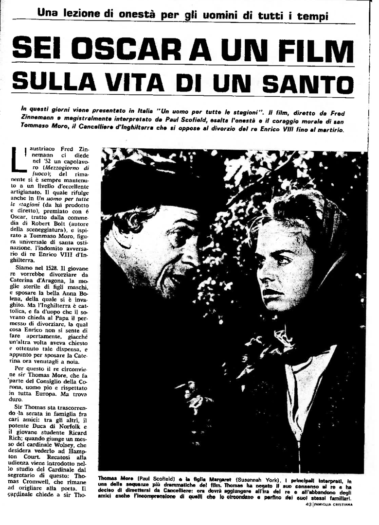 "Sei oscar a un film sulla vita di un santo"