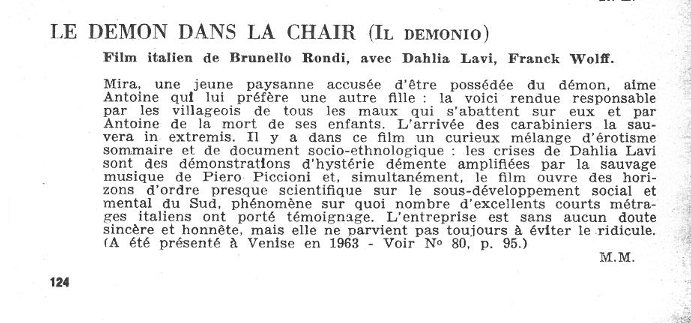 | Film (keywords PRIN 2012) | Il demonio (Brunello Rondi) |