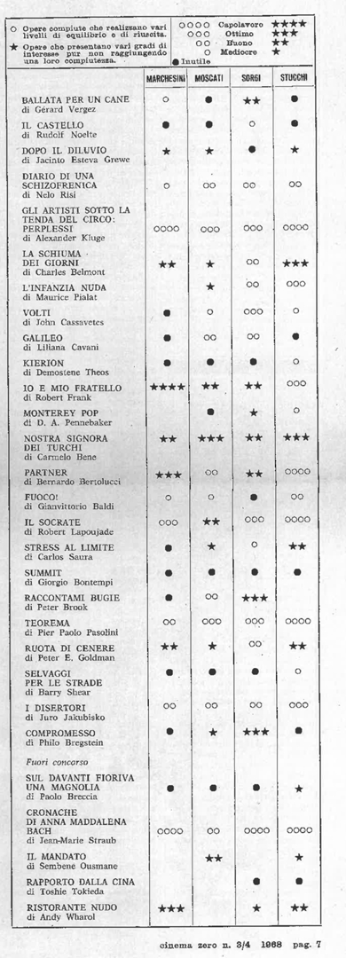 Giudizi critici su diversi film ad opera di Marchesini, Moscati, Sorgi, Stucchi
