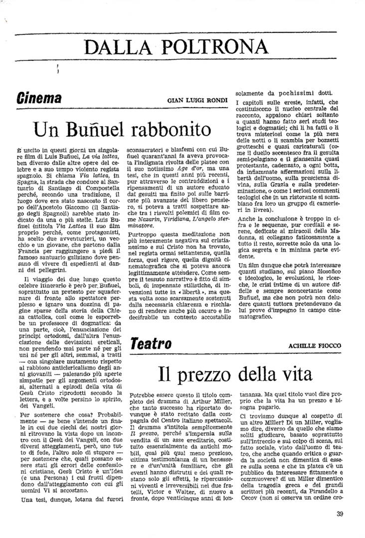 | Film (keywords PRIN 2012) | El ángel exterminador (L'angelo sterminatore, Luis Buñuel) L'"ge d'or (Luis Buñuel) La voie lactée (La via lattea, Luis Buñuel) Nazarin (Luis Buñuel) Viridiana (Luis Buñuel) |