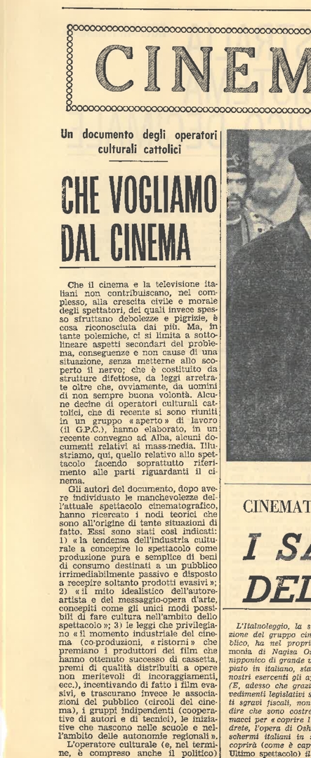 | Temi (keywords PRIN 2012) | Ermanno Olmi GPC (Gruppo di Presenza Culturale) legislazione sul cinema televisione |