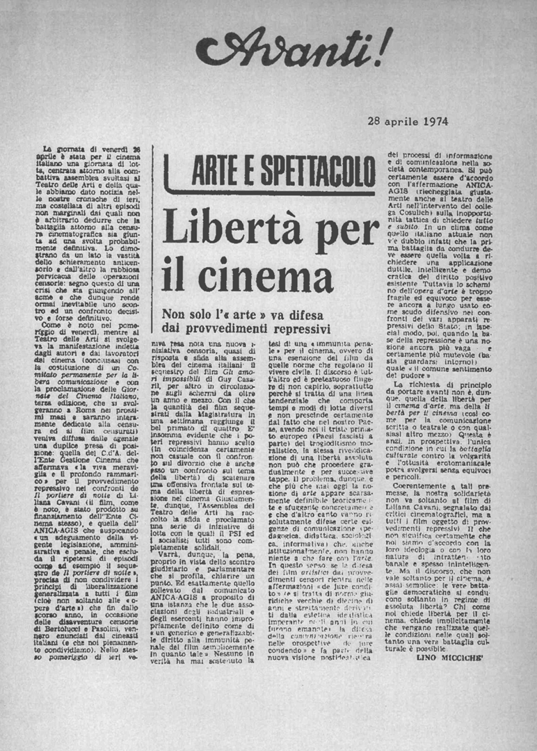 "Non solo l'arte va difesa dai provvedimenti repressivi"