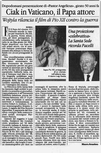 "Dopodomani presentazione di pastor angelicus, girato 50 anni fa"