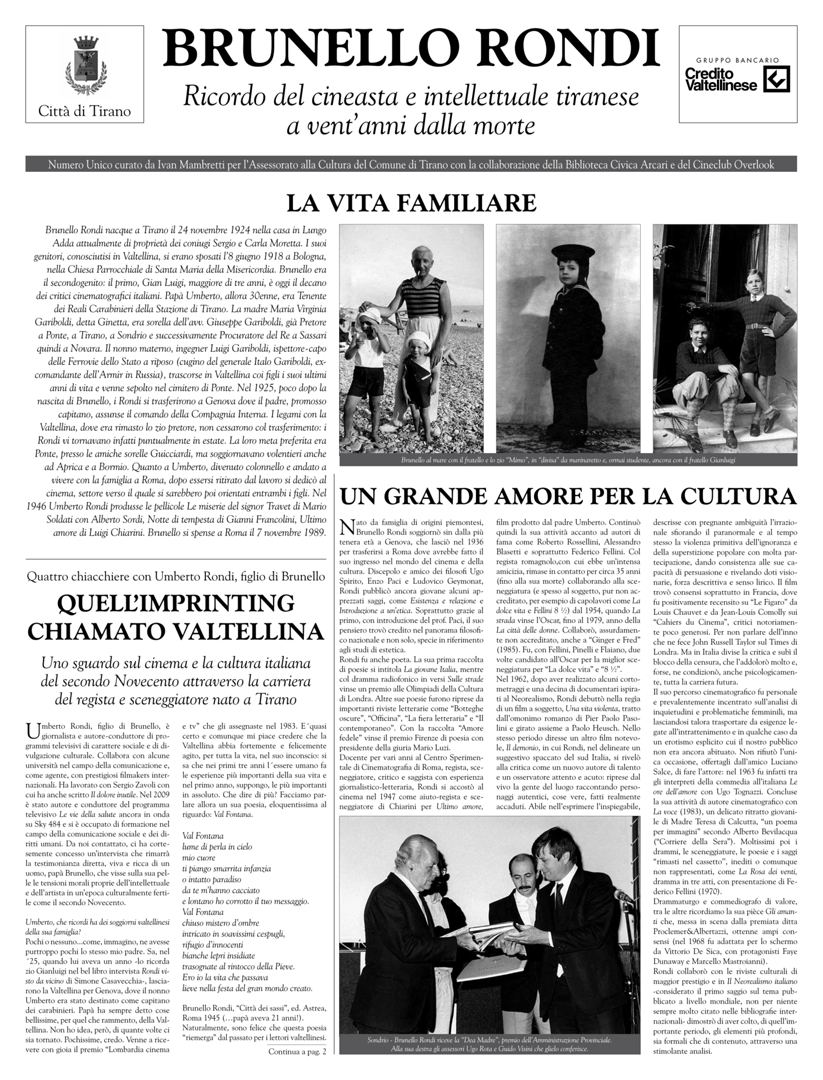 "Brunello Rondi. Ricordo del cineasta e intellettuale tiranese a vent'anni dalla morte"