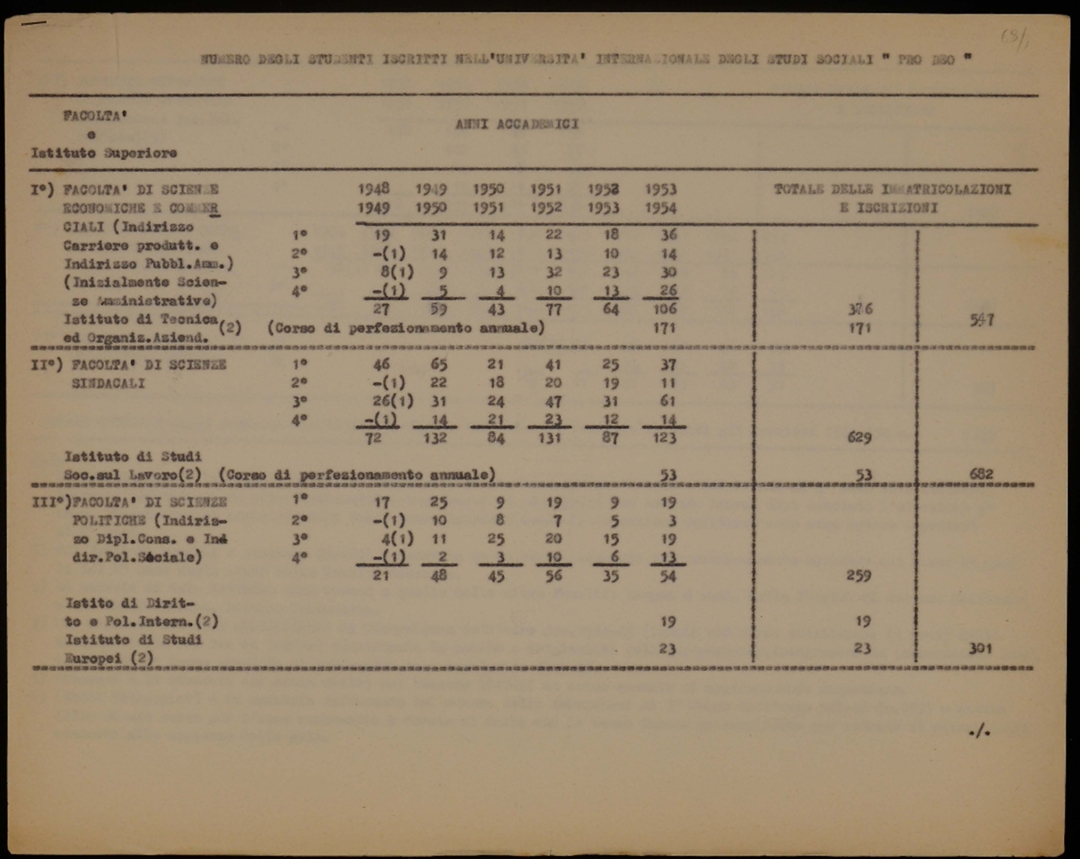 "Numero degli studenti iscritti all''Università internazionale degli studi sociali Pro Deo