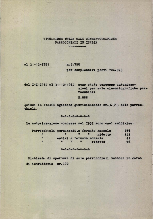 "Situazione delle sale cinematografiche parrocchiali in Italia"