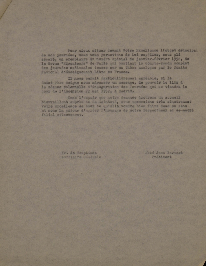 Lettera a firma di Jean Bernard e di Yvonne de Hemptinne, rispettivamente presidente e segretario generale dell'Office catholique international du cinematographe - OCIC, a destinatario non indicato
