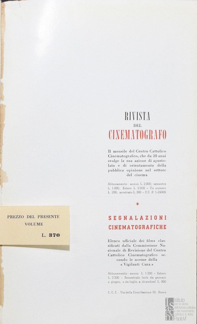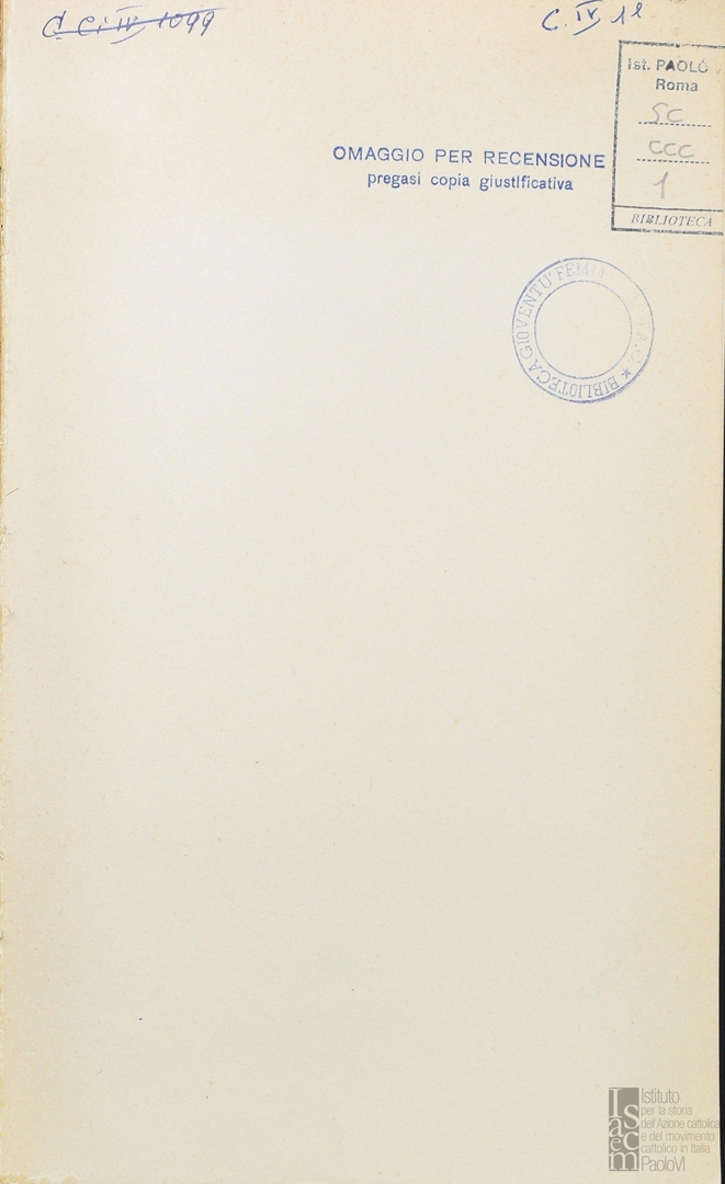 | Soggetto conservatore | ISACEM - Istituto per la storia dell'Azione cattolica e del movimento cattolico in Italia Paolo VI |