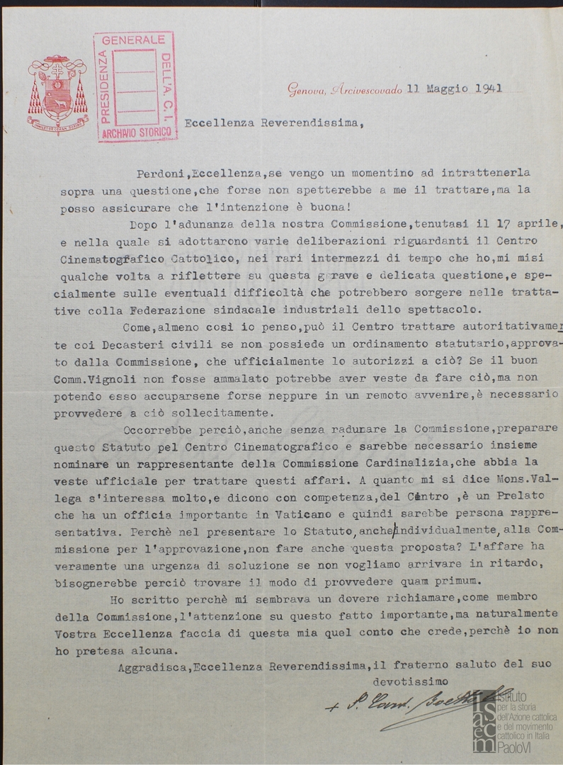 Lettera del card. Pietro Boetto a mons. Luigi Borghino