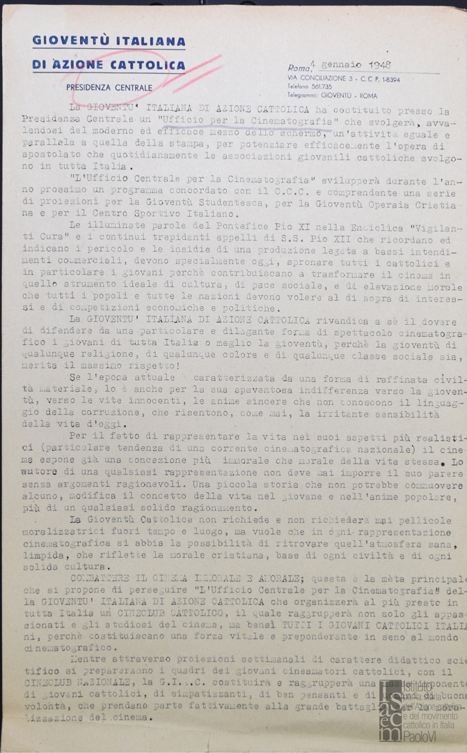 La GIAC costituisce l'Ufficio Centrale per la Cinematografia
