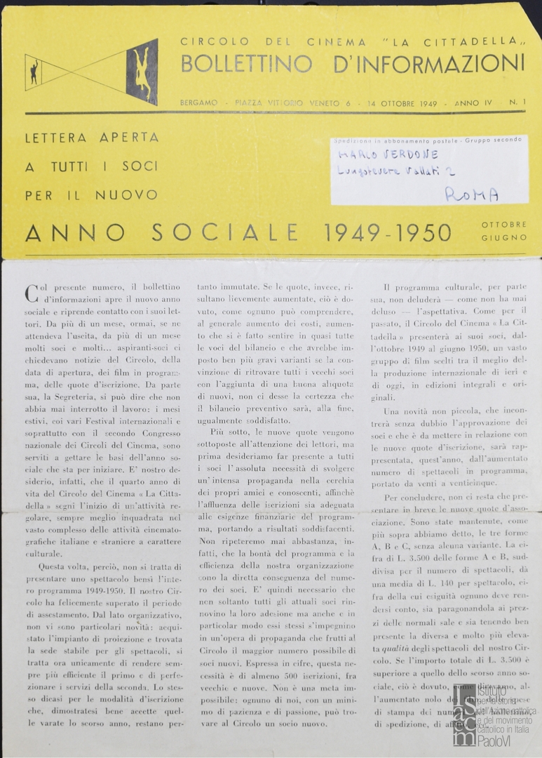 Bollettino d'informazioni del Circolo del Cinema "La Cittadella" di Bergamo