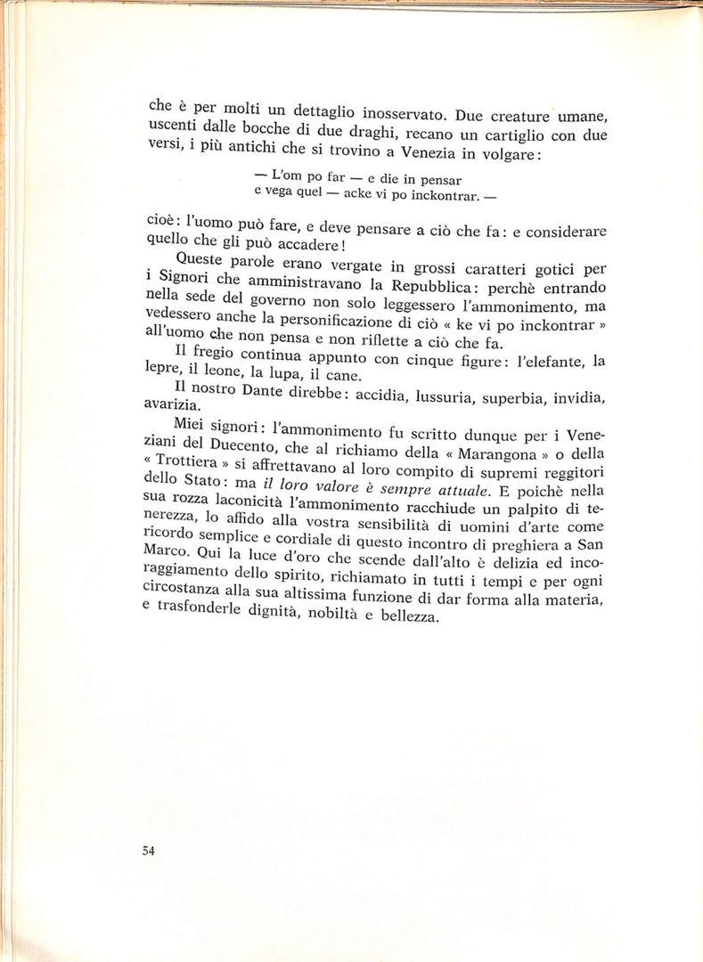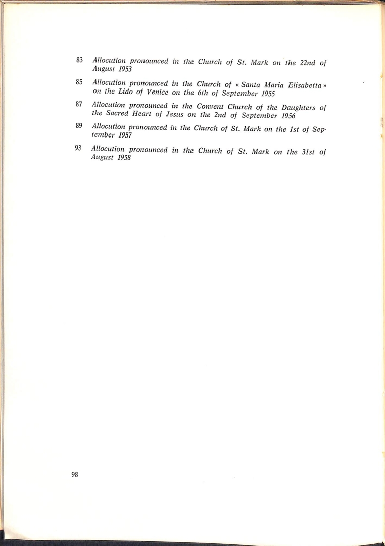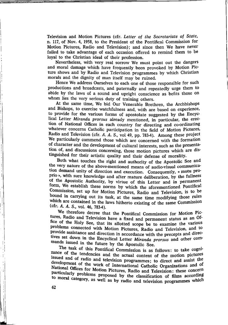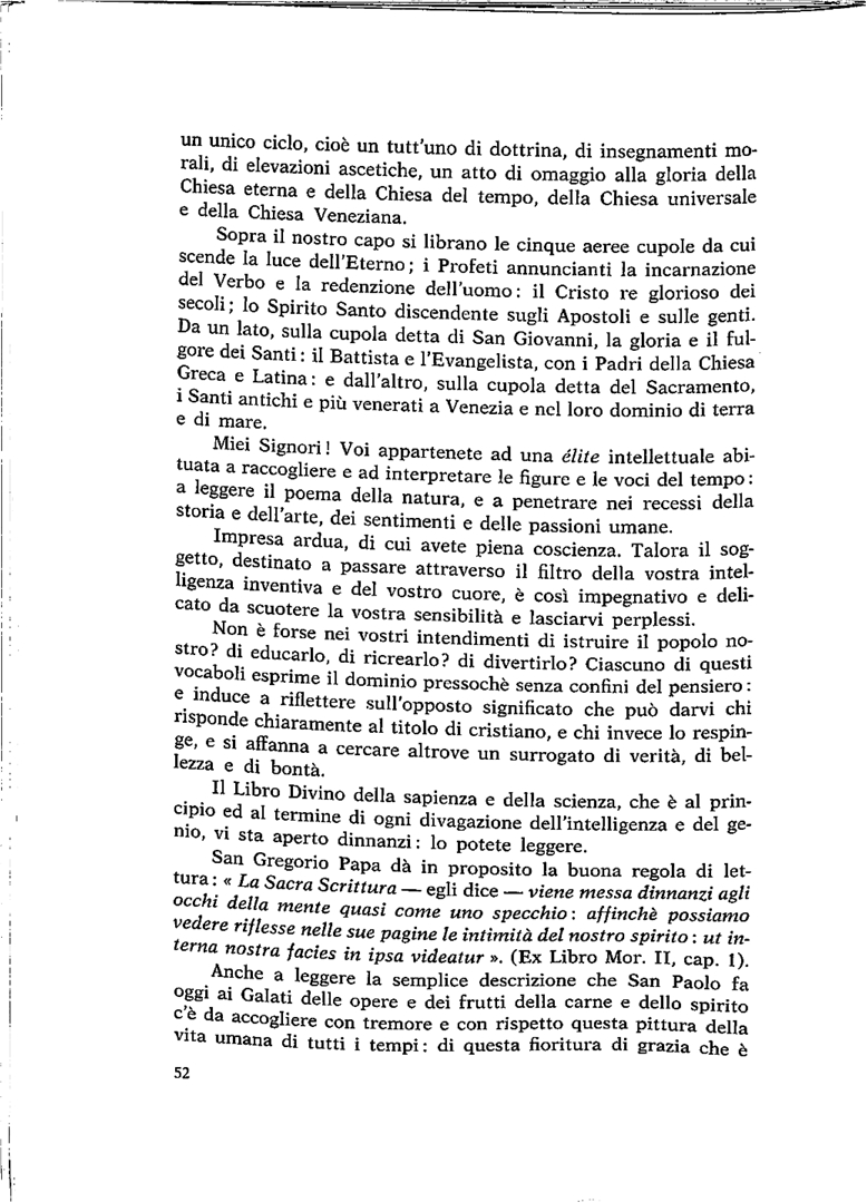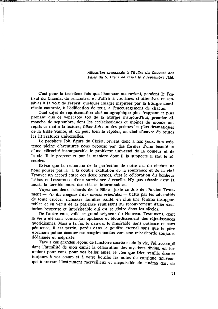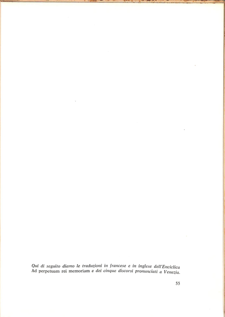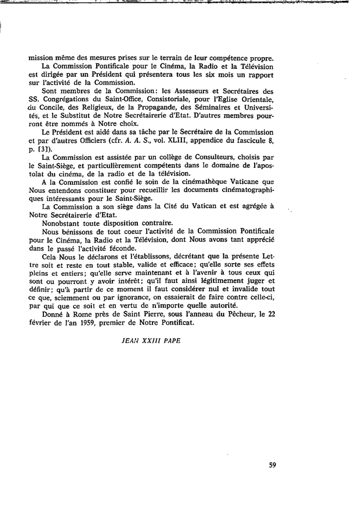 Il documento รจ un solenne omaggio a Giovanni XXIII e al suo rapporto con il cinema negli anni da cardinale e da patriarca di Venezia redatto dagli esponenti della Mostra Internazionale d'Arte Cinematografica di Venezia, dell'Associazione Nazionale Industrie Cinematografiche e Affini (ANICA) e dell'Associazione Generala Italiana dello Spettacolo (AGIS), i quali hanno collezionato nel volume i discorsi sul cinema tenuti da Roncalli nel periodo compreso tra il 1953 e il 1958.