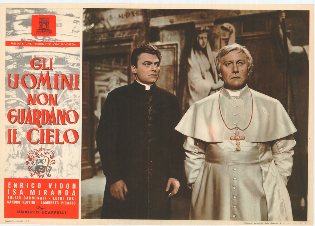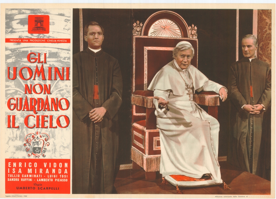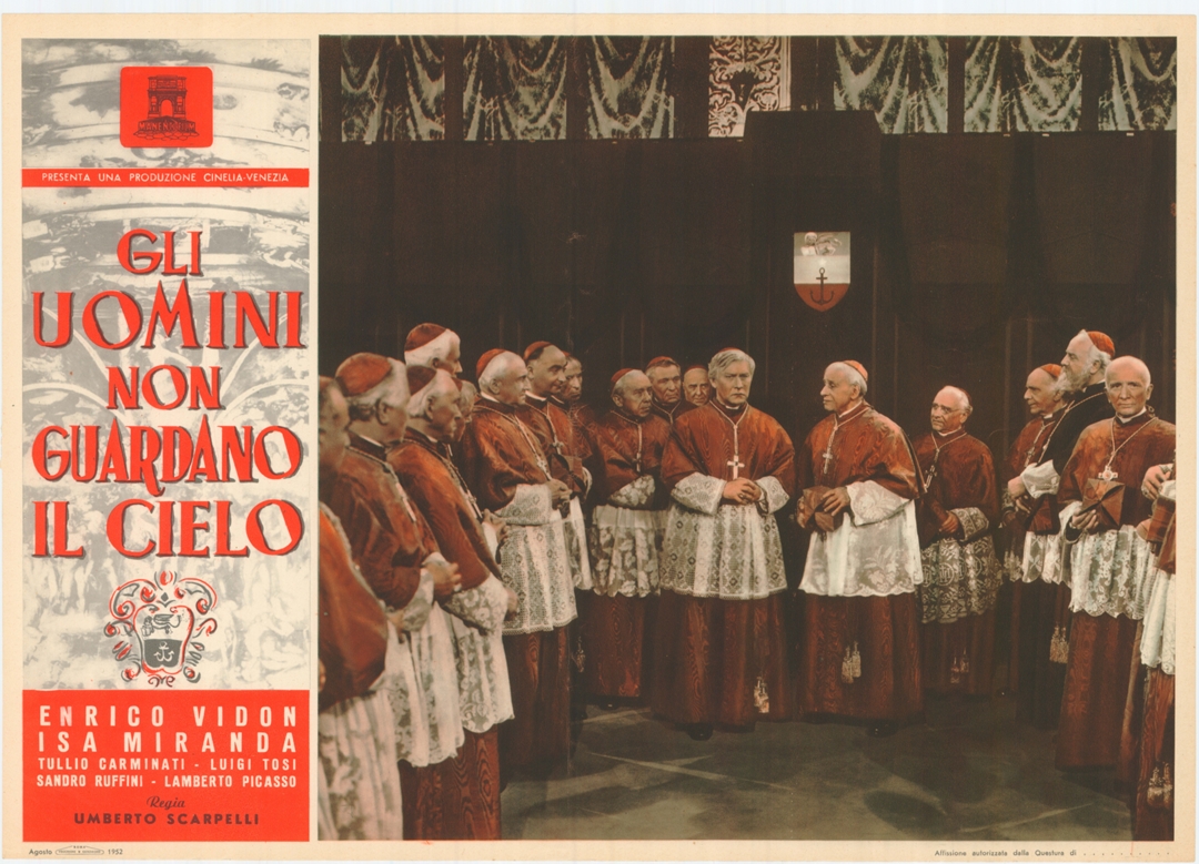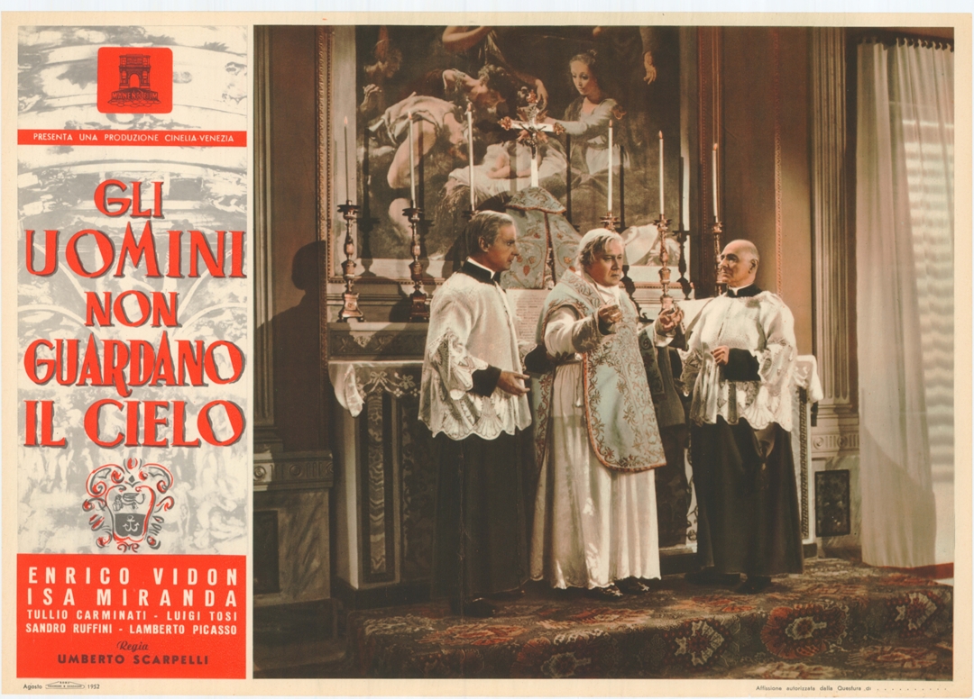 Foto buste promozionali del film "Gli uomini non guardano il cielo" (U. Scarpelli, 1952), co-prodotto dalle società Cinelia, di Pietro Spessa, e San Marco Film, di Rambaldo di Collalto, in seguito alla beatificazione di Pio X avvenuta il 3 giugno 1951.