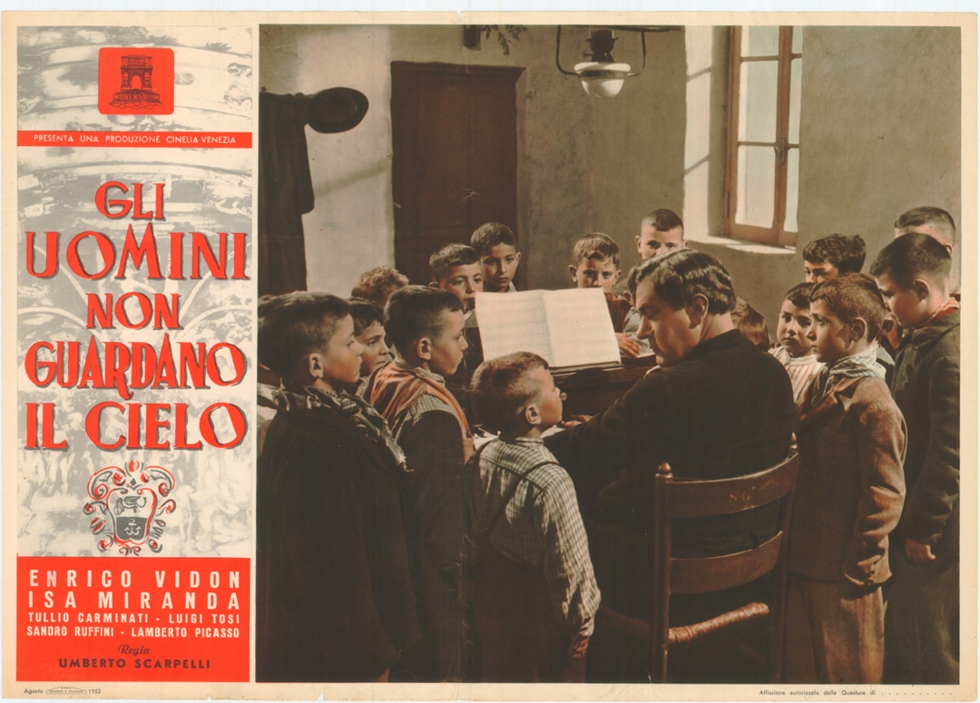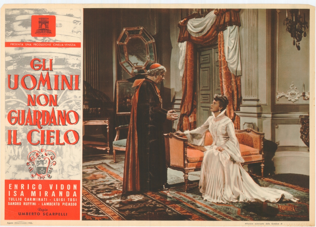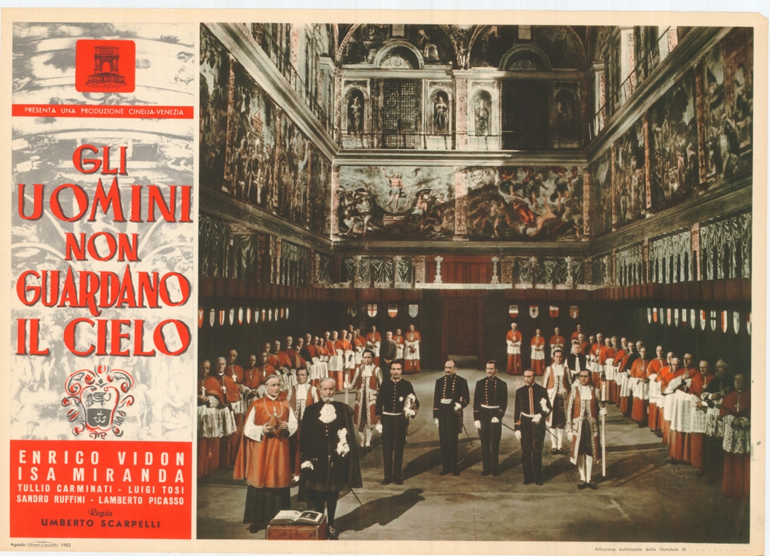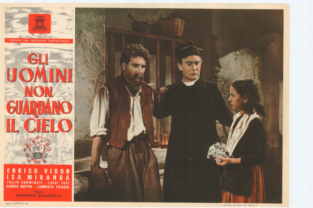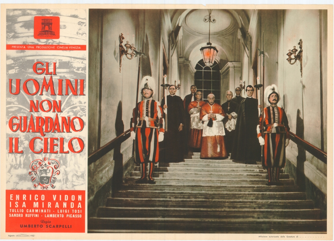 Foto buste promozionali del film "Gli uomini non guardano il cielo" (U. Scarpelli, 1952), co-prodotto dalle società Cinelia, di Pietro Spessa, e San Marco Film, di Rambaldo di Collalto, in seguito alla beatificazione di Pio X avvenuta il 3 giugno 1951.