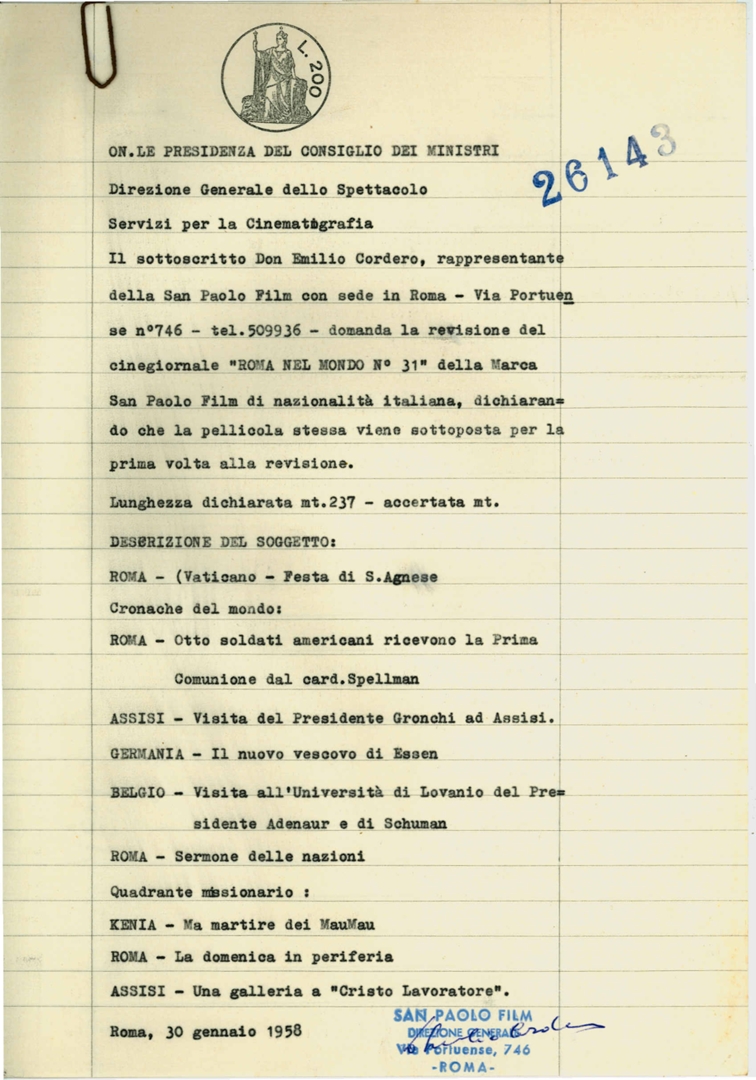 Cinegiornale "Roma nel mondo n. 31"