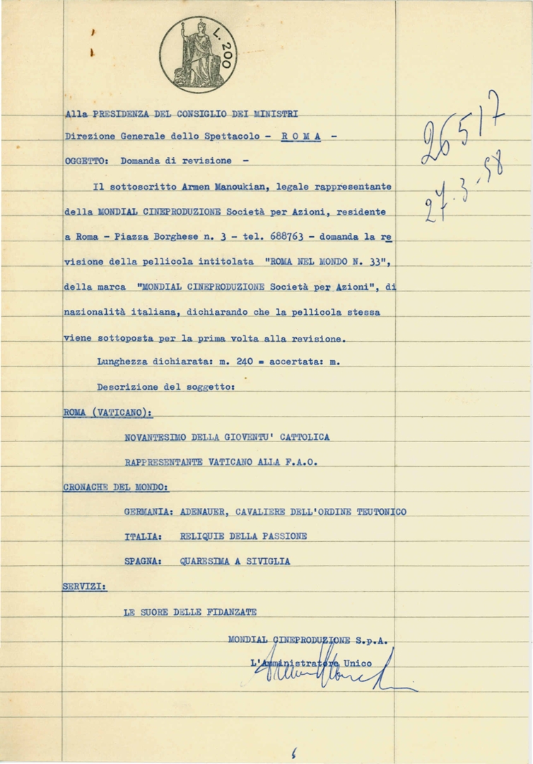 Soggetto conservatore | Archivio Direzione generale cinema e audiovisivo del Ministero della Cultura |
