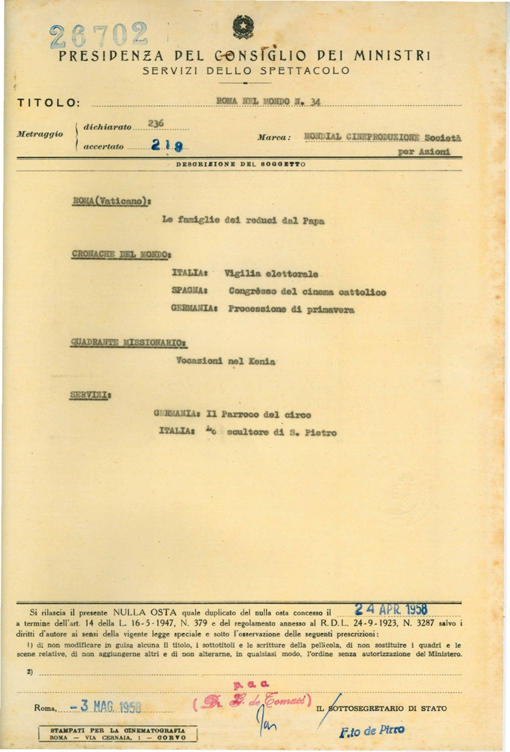 Cinegiornale "Roma nel mondo n. 34"