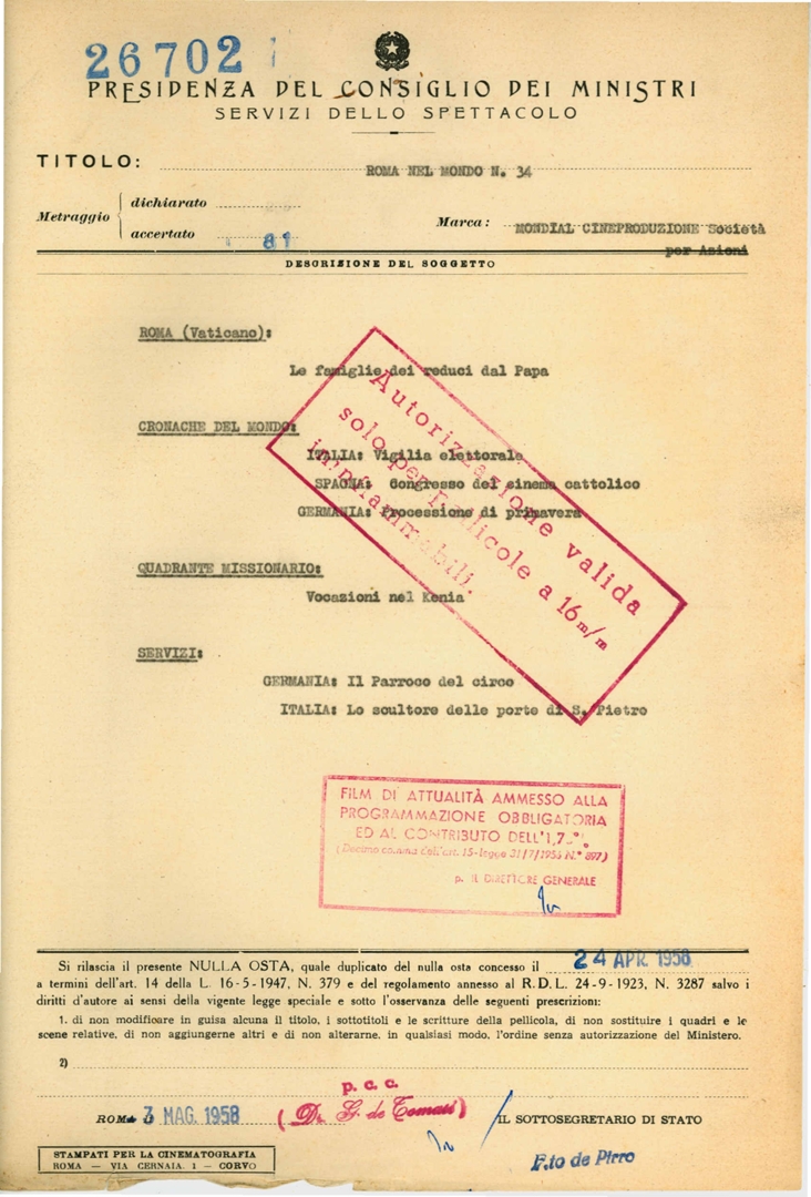 Soggetto conservatore | Archivio Direzione generale cinema e audiovisivo del Ministero della Cultura |