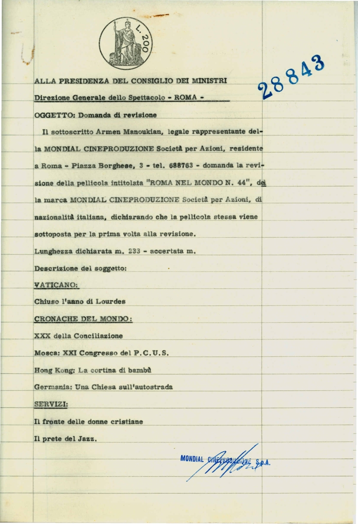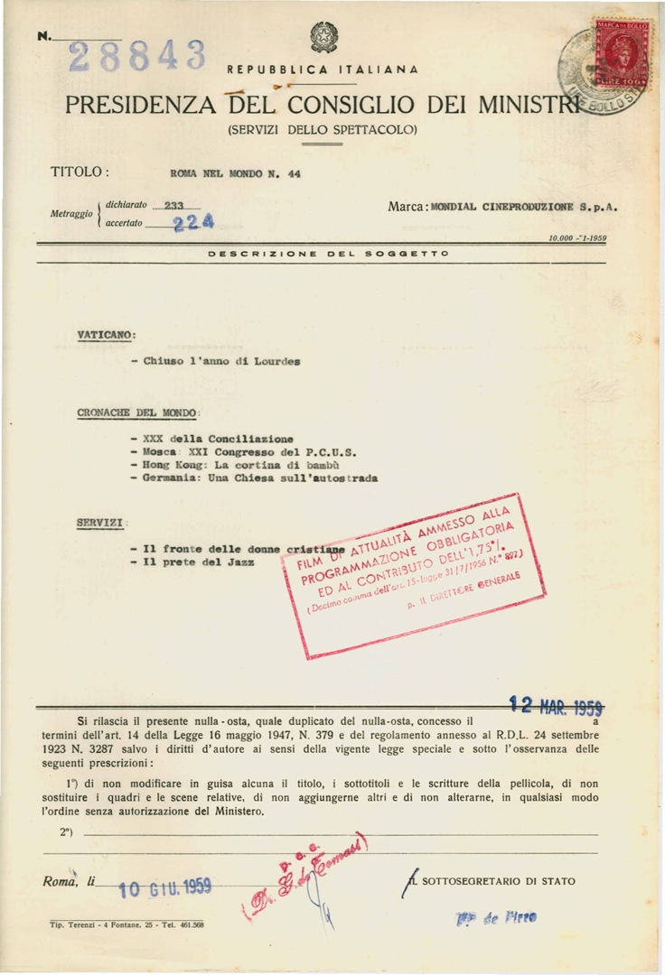 Cinegiornale "Roma nel mondo n. 44"