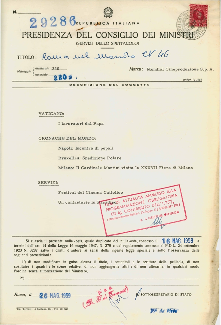 Soggetto conservatore | Archivio Direzione generale cinema e audiovisivo del Ministero della Cultura |