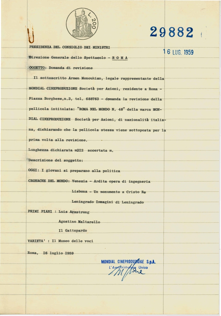 Soggetto conservatore | Archivio Direzione generale cinema e audiovisivo del Ministero della Cultura |