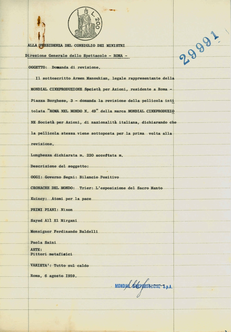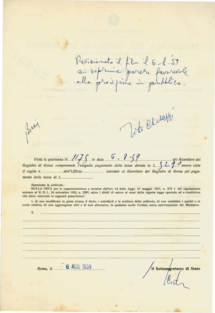Soggetto conservatore | Archivio Direzione generale cinema e audiovisivo del Ministero della Cultura |
