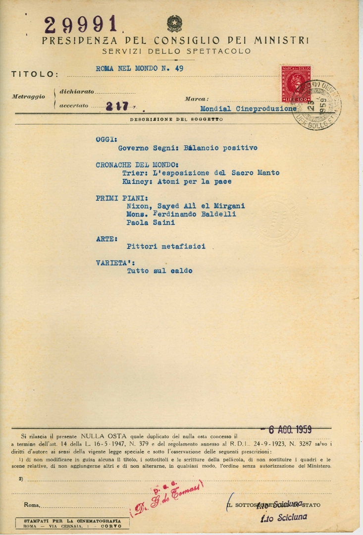 Cinegiornale "Roma nel mondo n. 49"