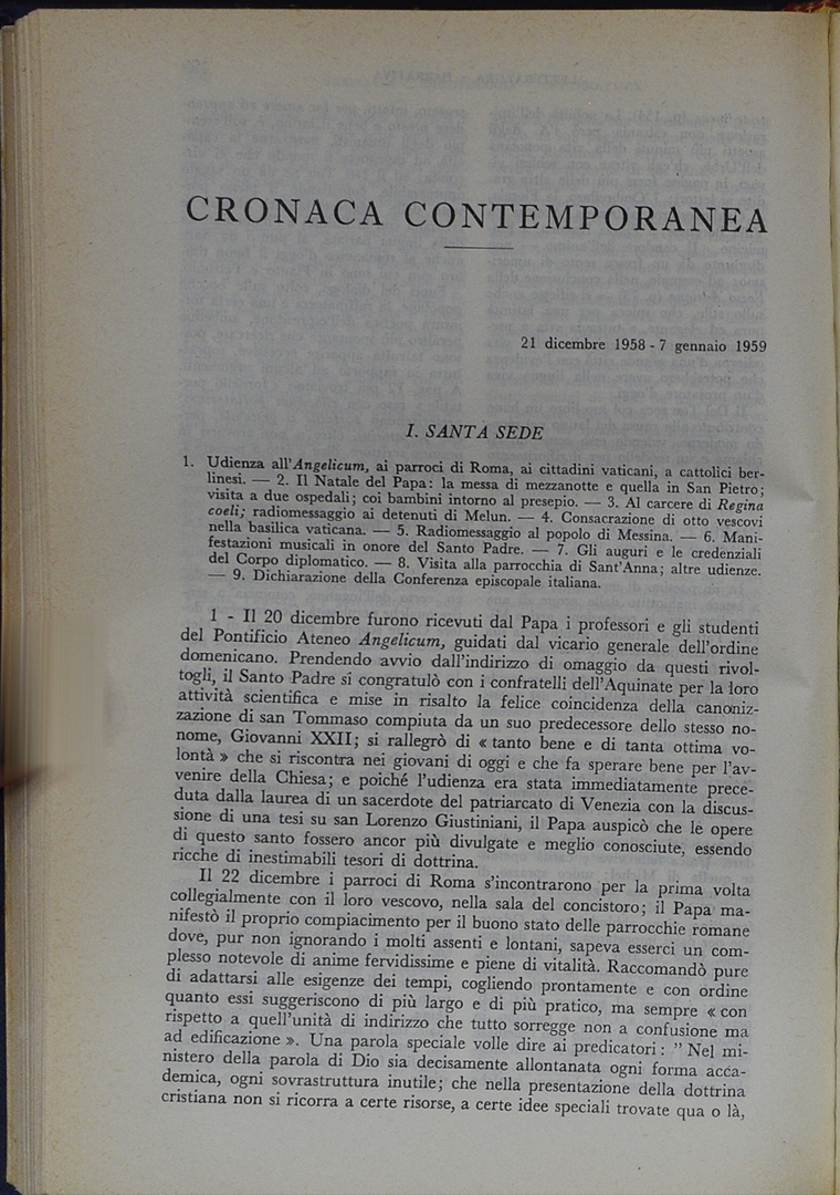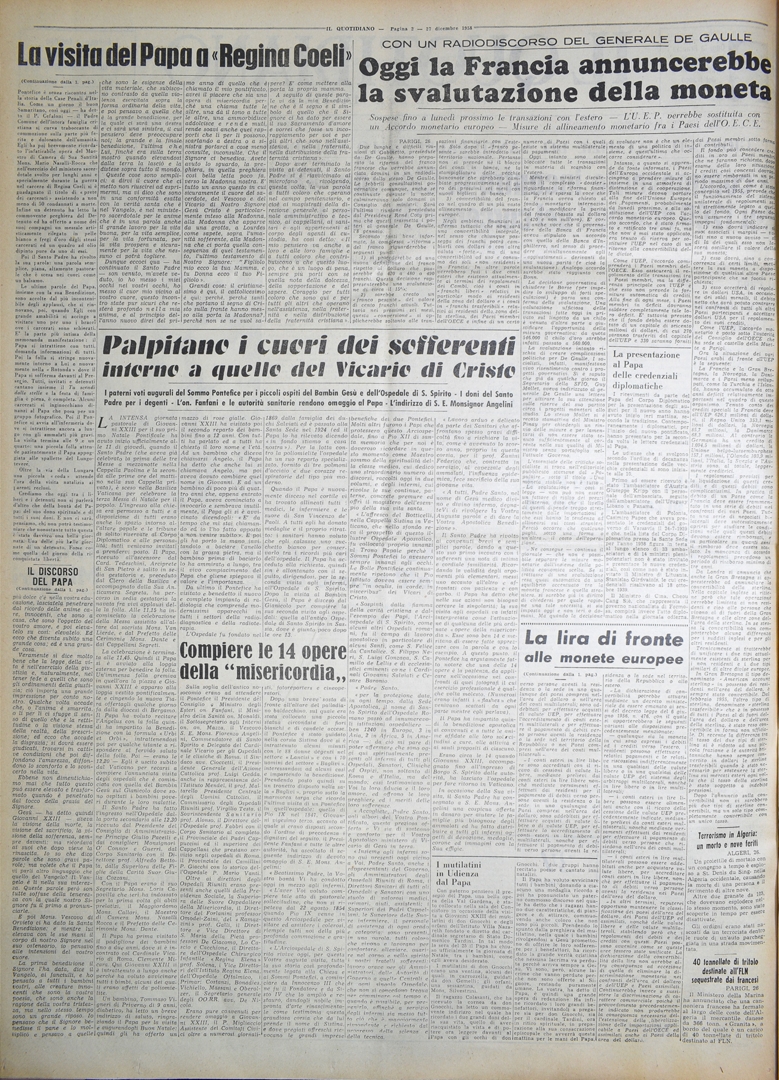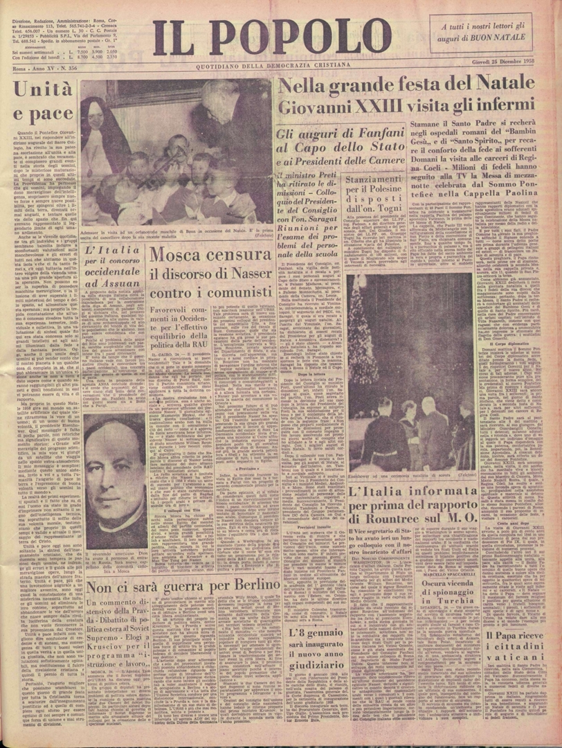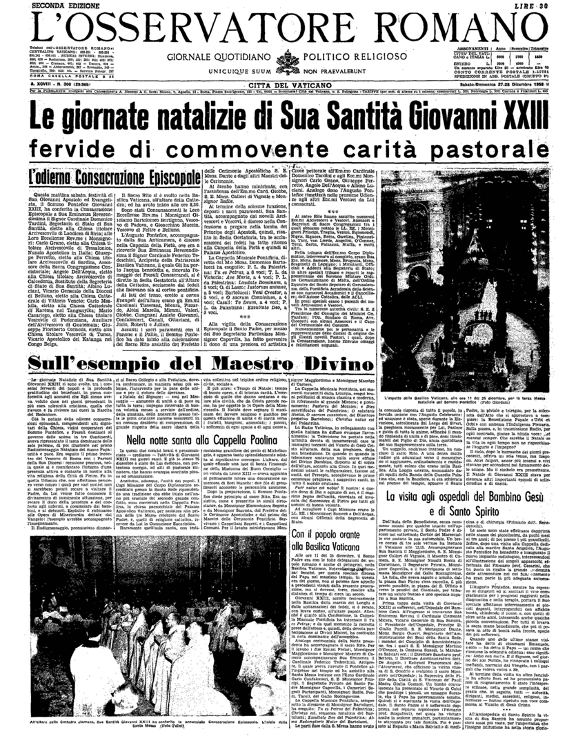 Le giornate natalizie di Sua Santità Giovanni XXIII fervide di commovente carità pastorale