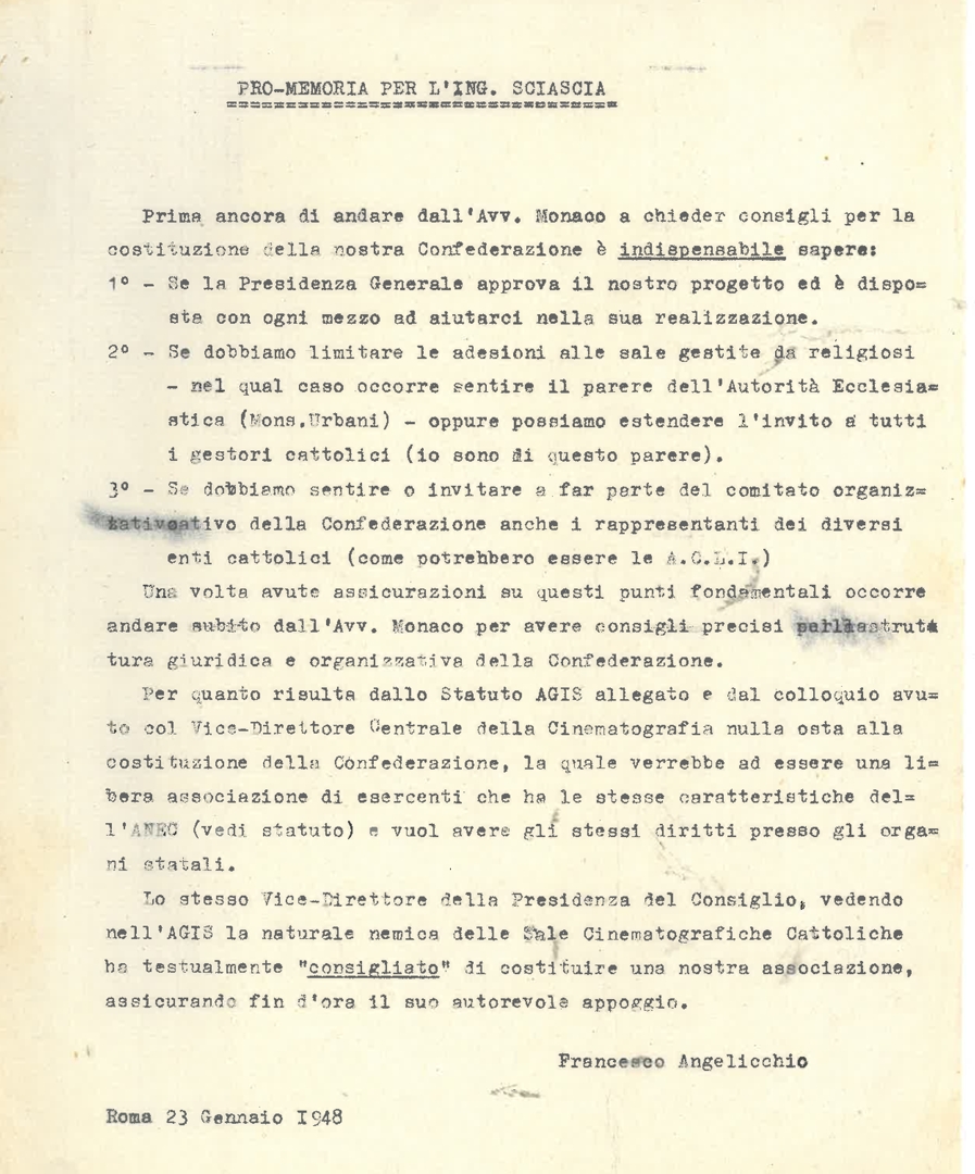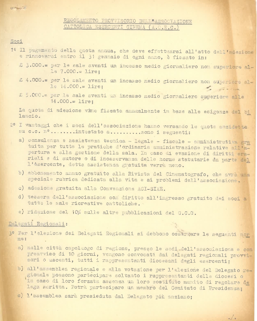 I cattolici e il cinema in Italia tra gli anni '40 e gli anni '70 ACEC - Associazione cattolica esercenti cinema Consiglio di presidenza 1949-1951