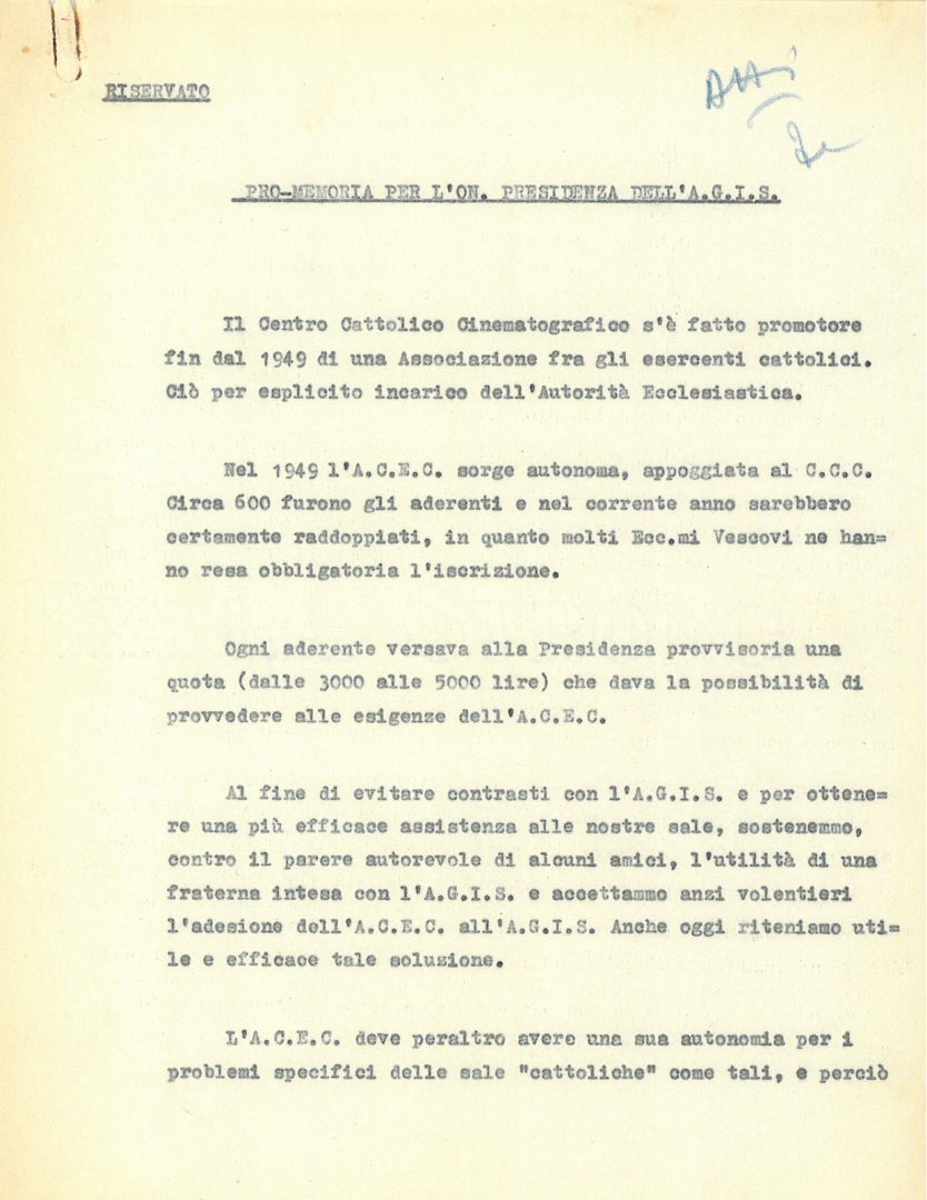 "Pro memoria per l'on. presidenza dell'AGIS"