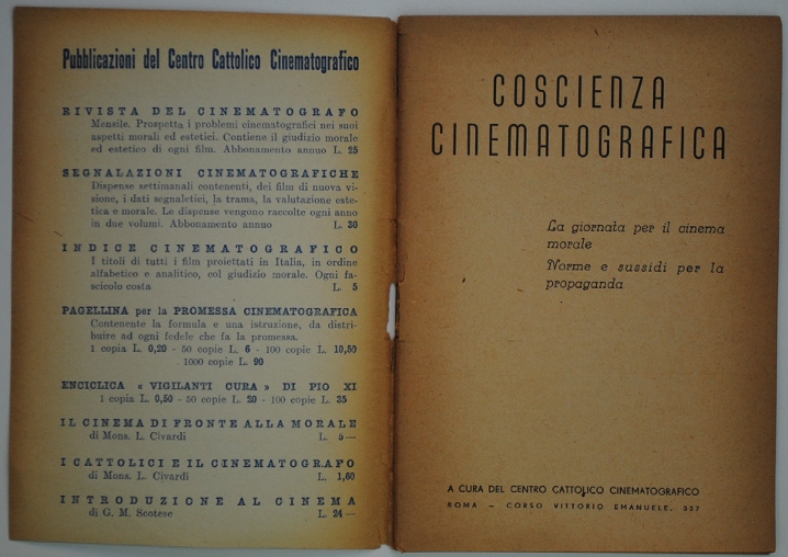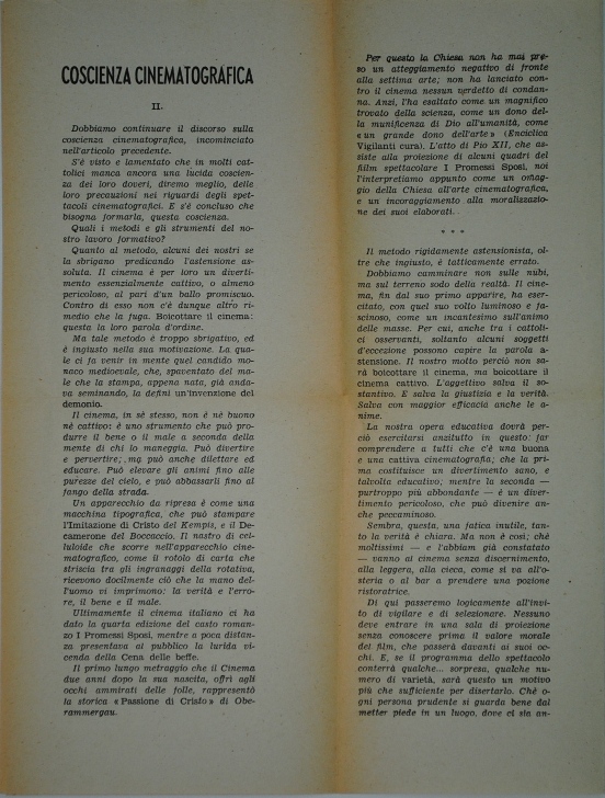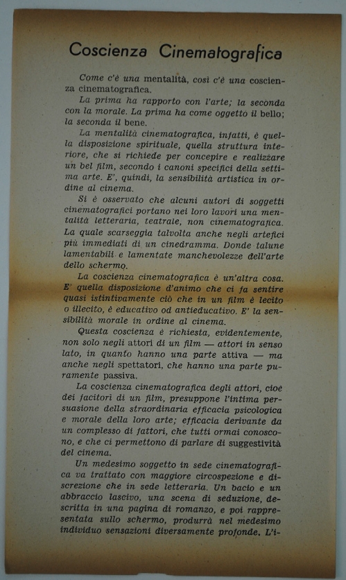 Coscienza cinematografica. Estratto dalla "Rivista del Cinematografo", Anno XV N. 2