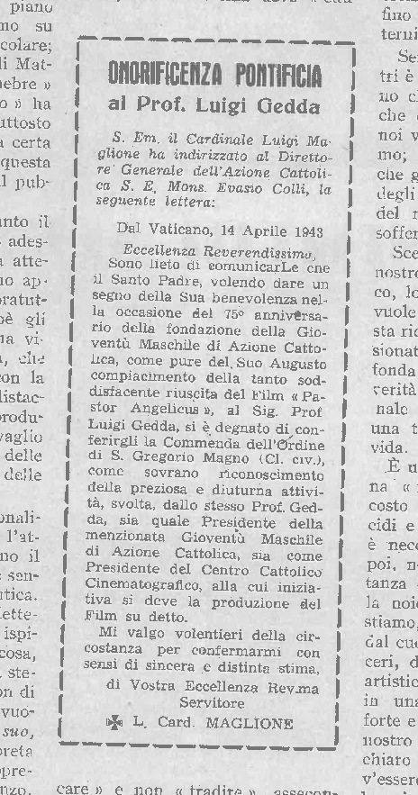 "Onorificenza pontificia al prof. Luigi Gedda"