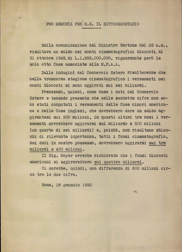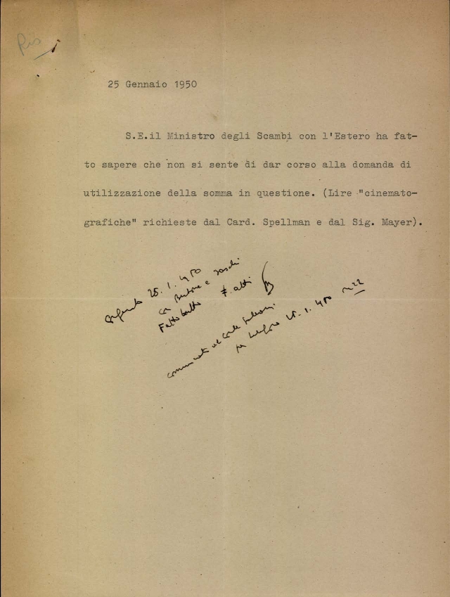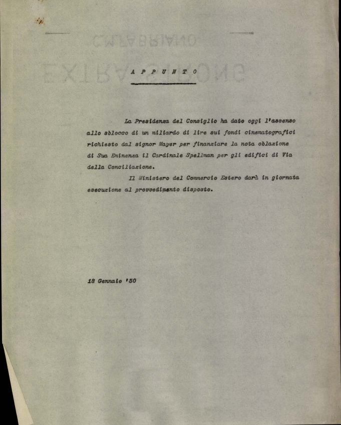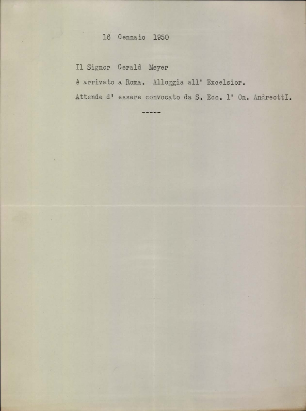 Appunto sull'arrivo a Roma del produttore cinematografico Gerald Mayer