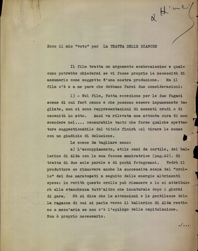 "Ecco il mio voto per 'La tratta delle bianche'", a firma di Giulio Andreotti