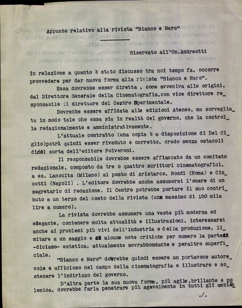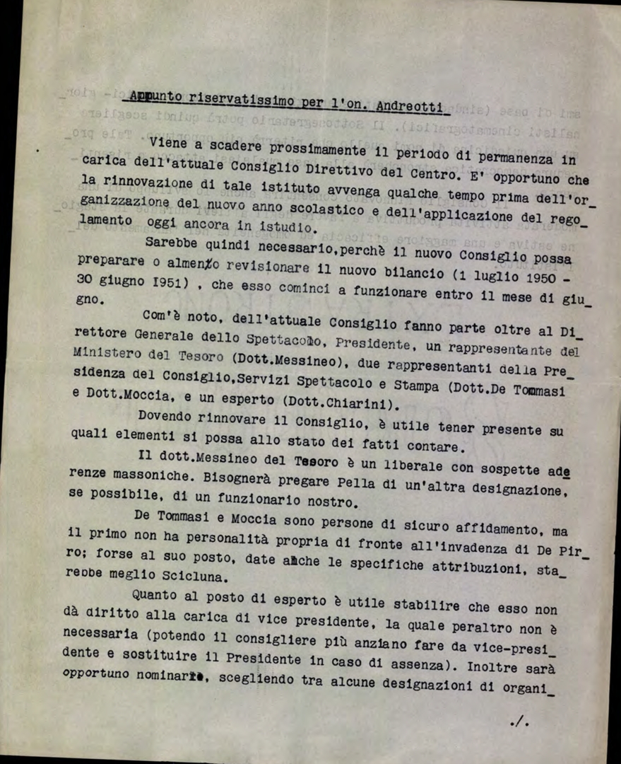 Appunto di [Francesco Borgongini Duca], nunzio apostolico in Italia, per l'on. Giulio Andreotti