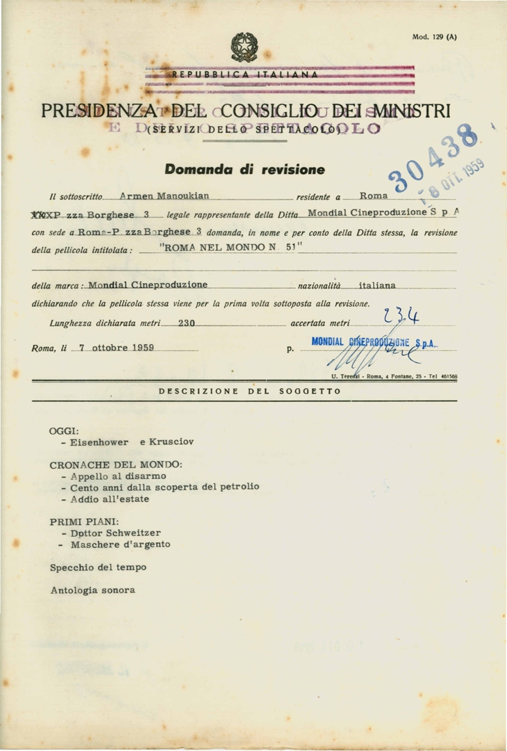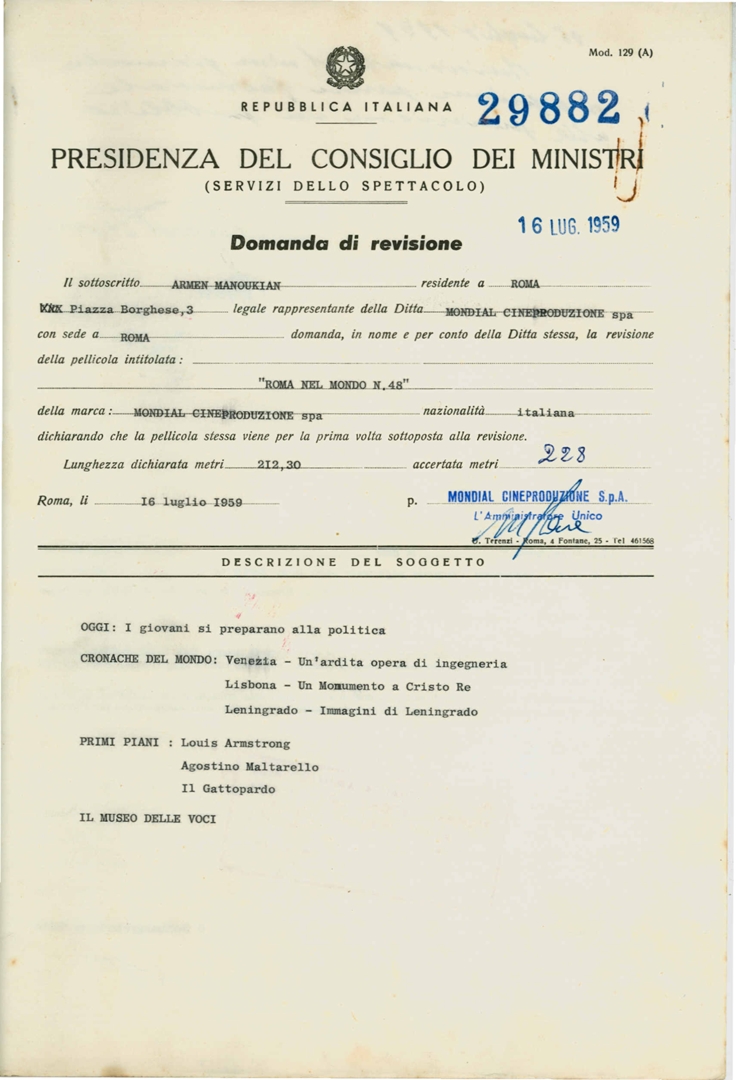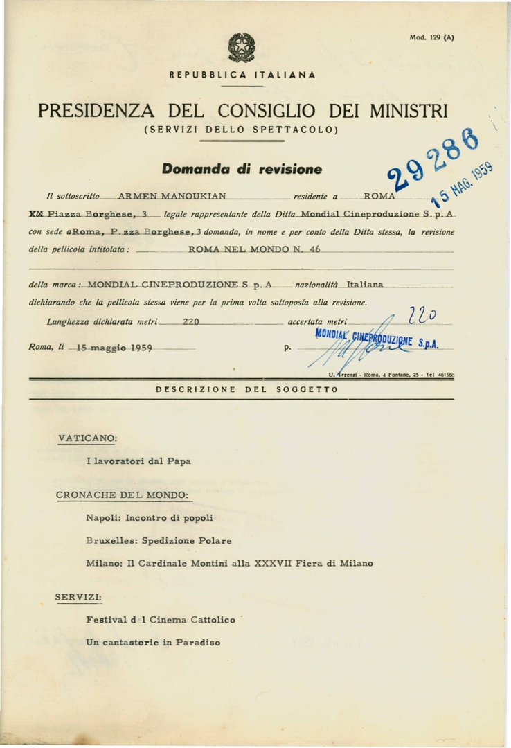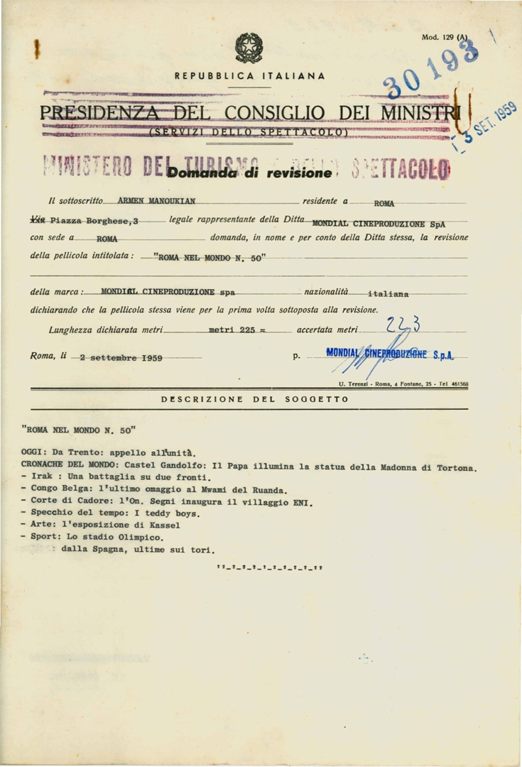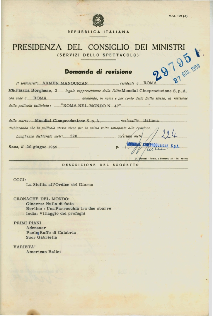Archivio Direzione generale cinema e audiovisivo del Ministero della Cultura