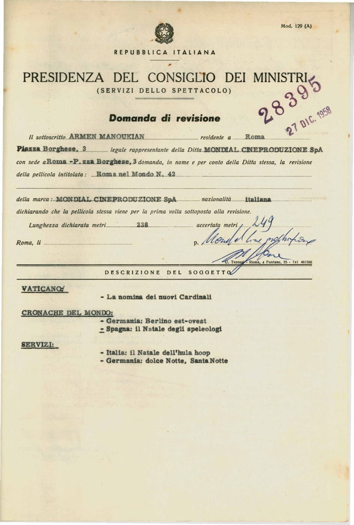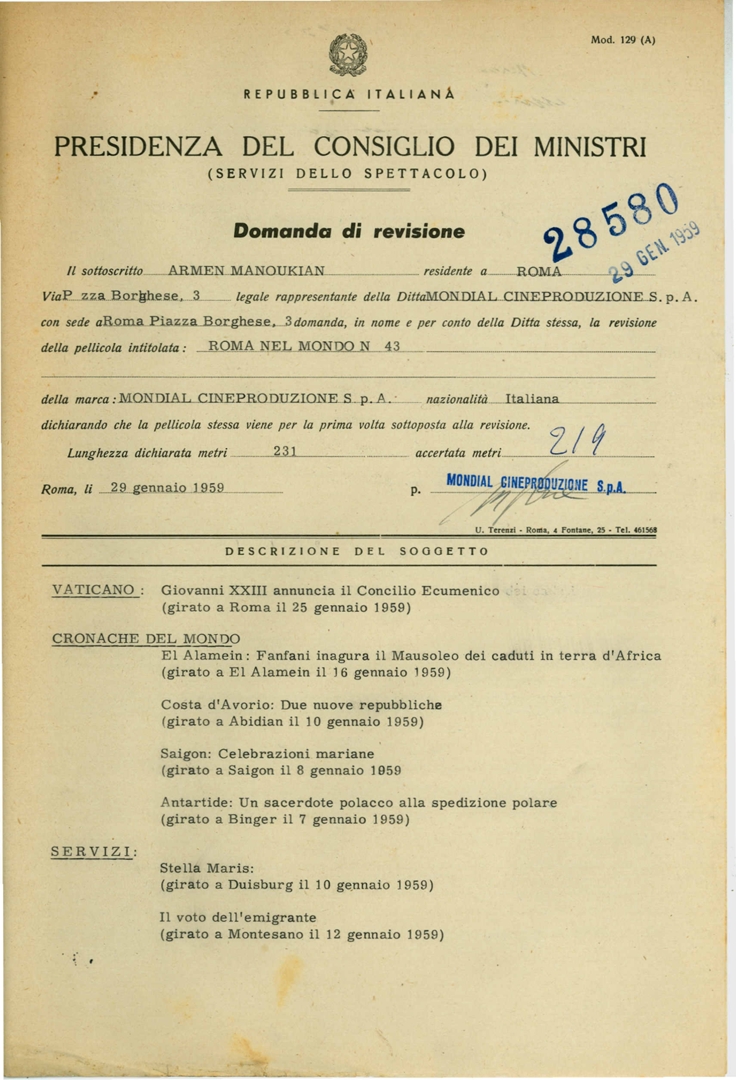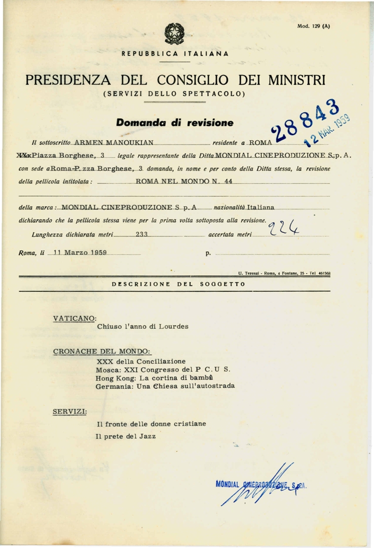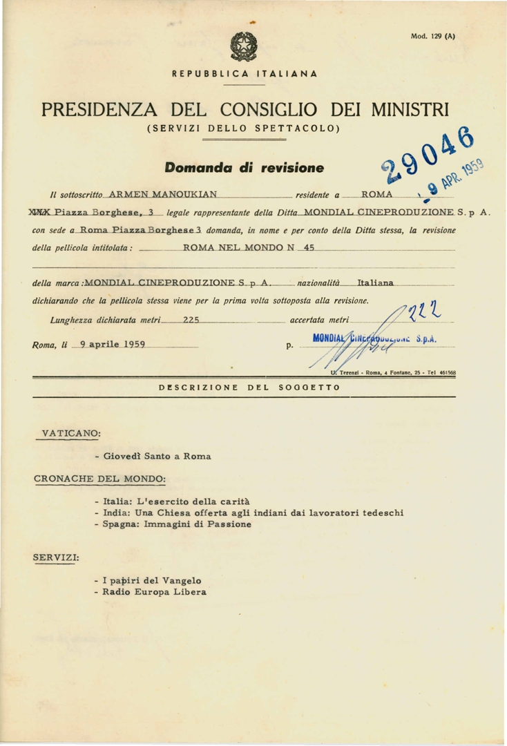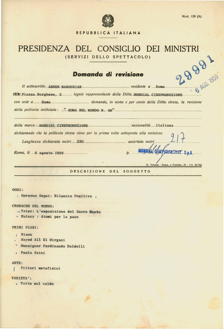 Archivio Direzione generale cinema e audiovisivo del Ministero della Cultura