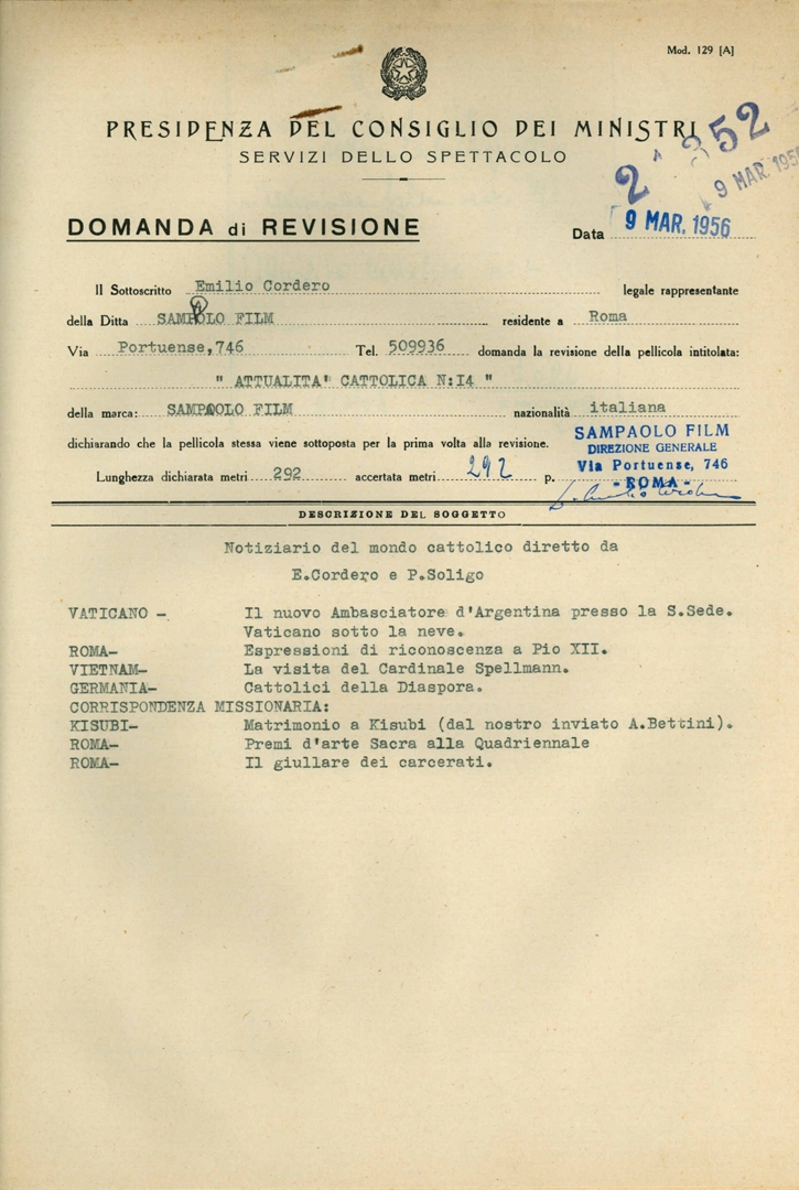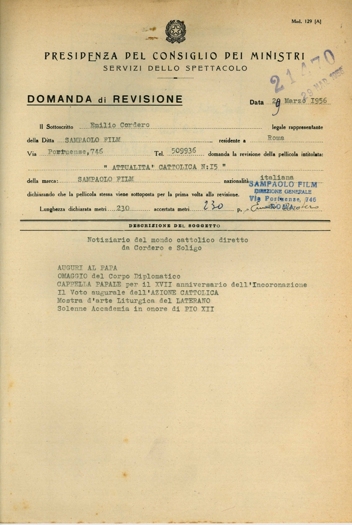 Archivio Direzione generale cinema e audiovisivo del Ministero della Cultura