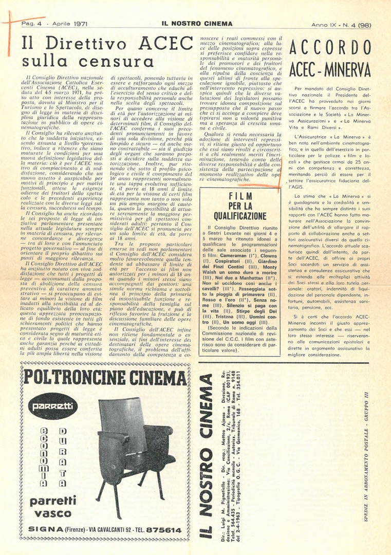 "La moralizzazione del cinema in un appello dell'A.C.E.C."