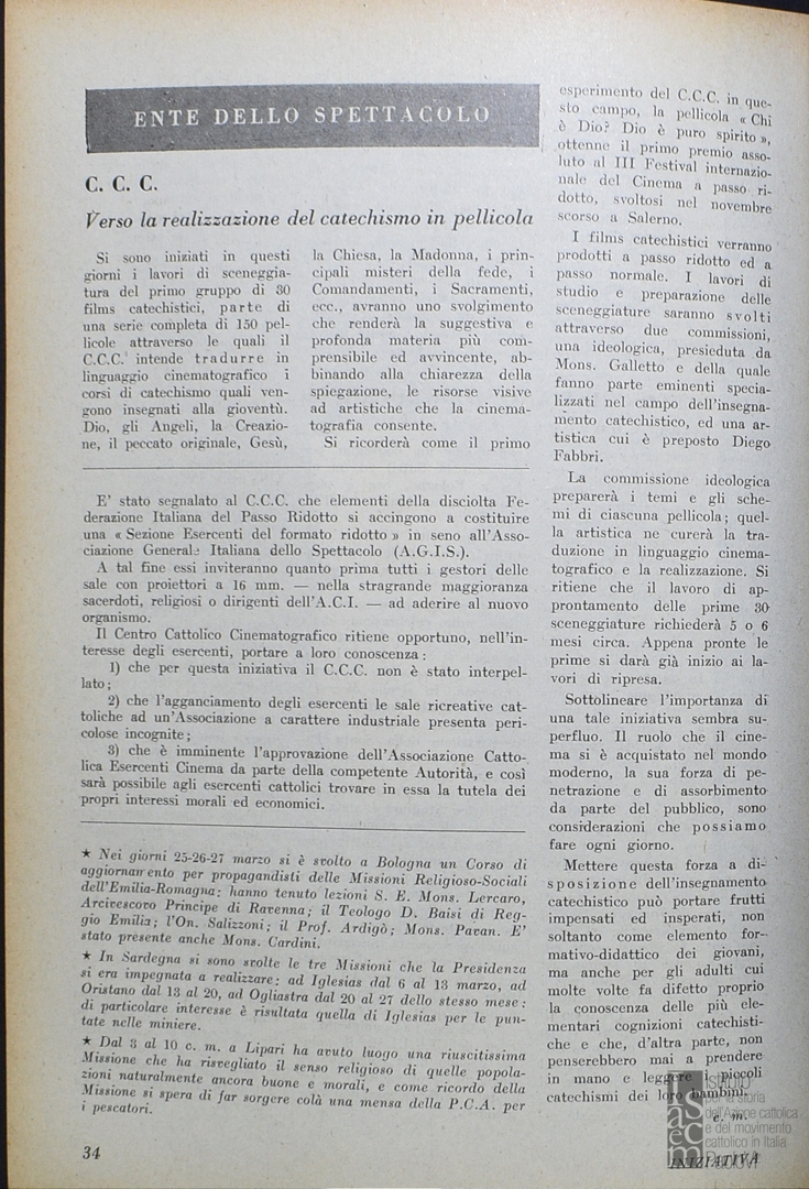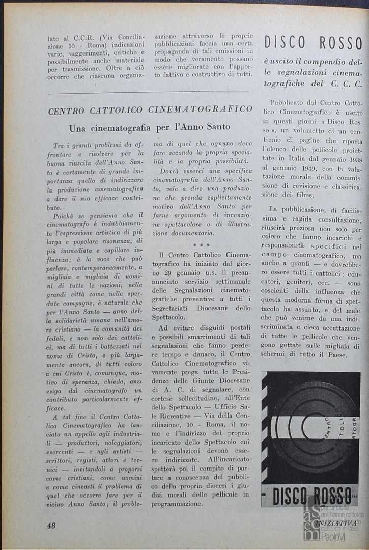 Centro cattolico cinematografico. Una cinematografia per l'Anno Santo