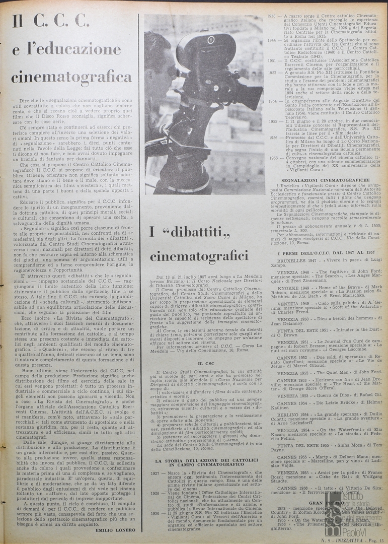 Rapporti con il Centro cattolico cinematografico e con la Federazione italiana dei circoli del cinema