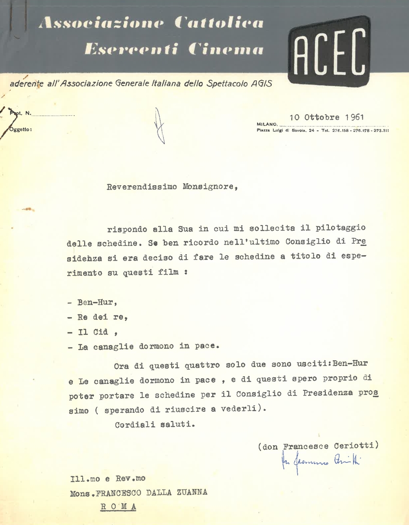 I cattolici e il cinema in Italia tra gli anni '40 e gli anni '70 Collezione materiali a stampa PRIN 2012