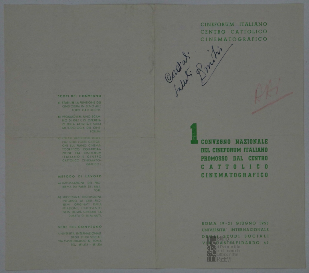 "1 Convegno nazionale del Cineforum italiano promosso da Centro cattolico cinematografico, Roma 19-21 giugno 1953"