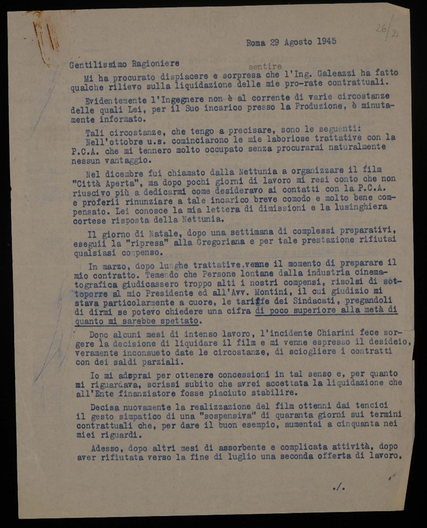 Lettera di Carlo Civallero, direttore della Cines, a mons. Albino Galletto, consulente ecclesiastico dell'Ente dello spettacolo