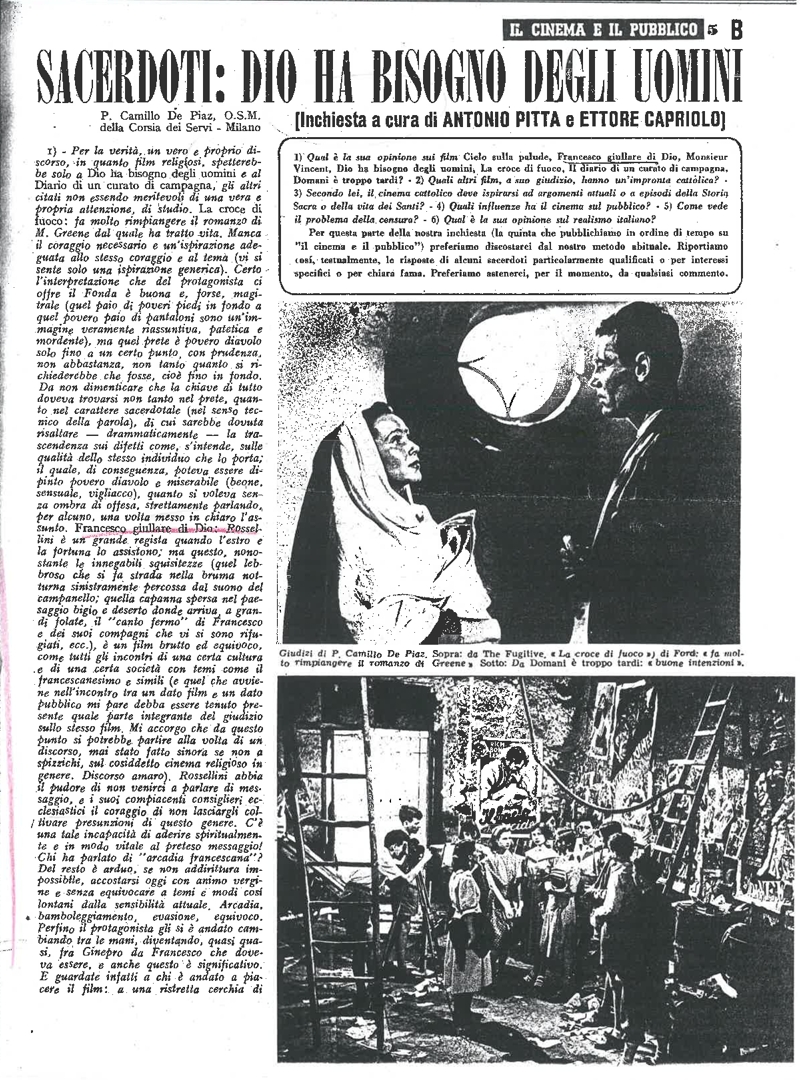 "Conclusioni di padre Morlion sui premi assegnati al festival di Venezia"