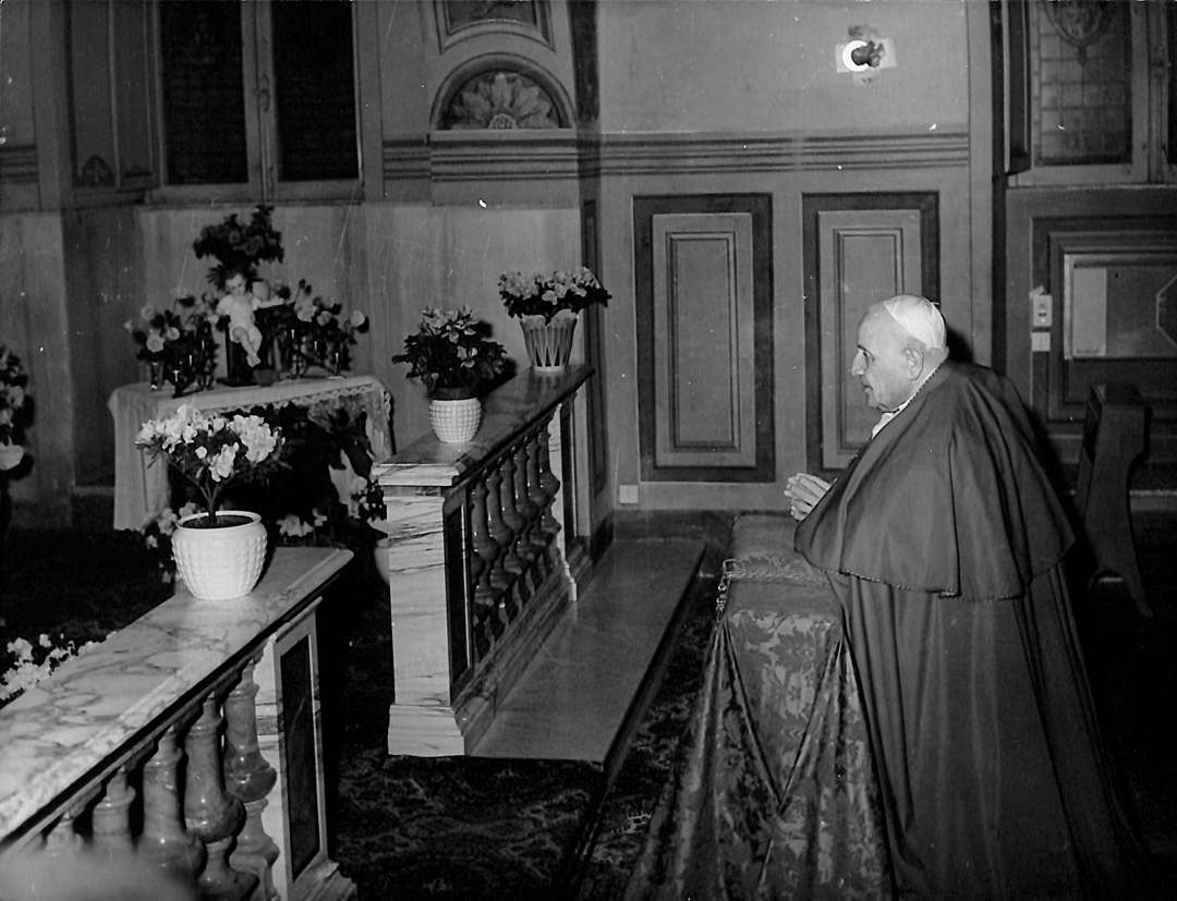 Giovanni XXIII raccolto in preghiera nella Cappella dell'Ospedale