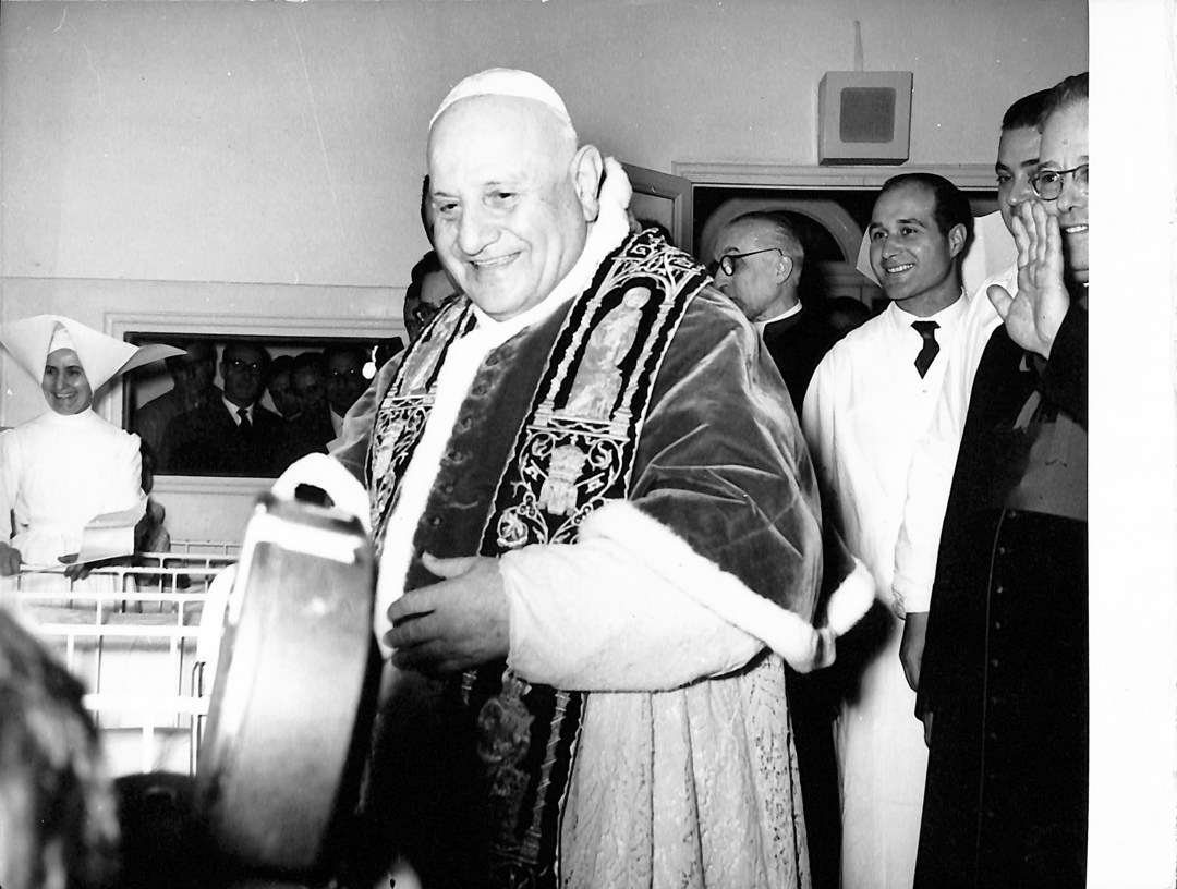 Giovanni XXIII entra sorridente in una stanza di degenza