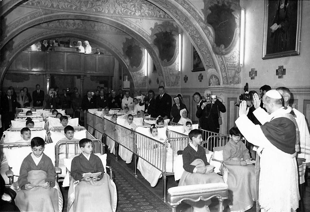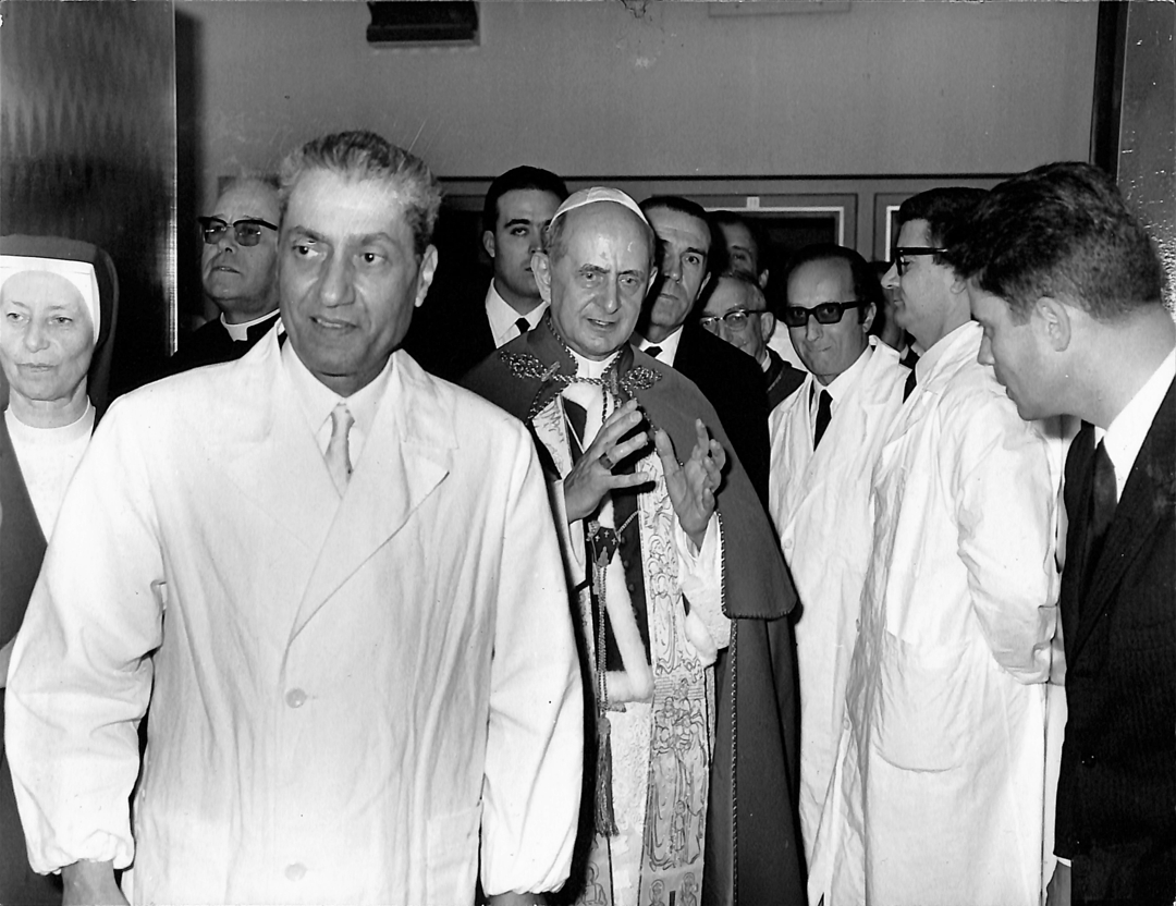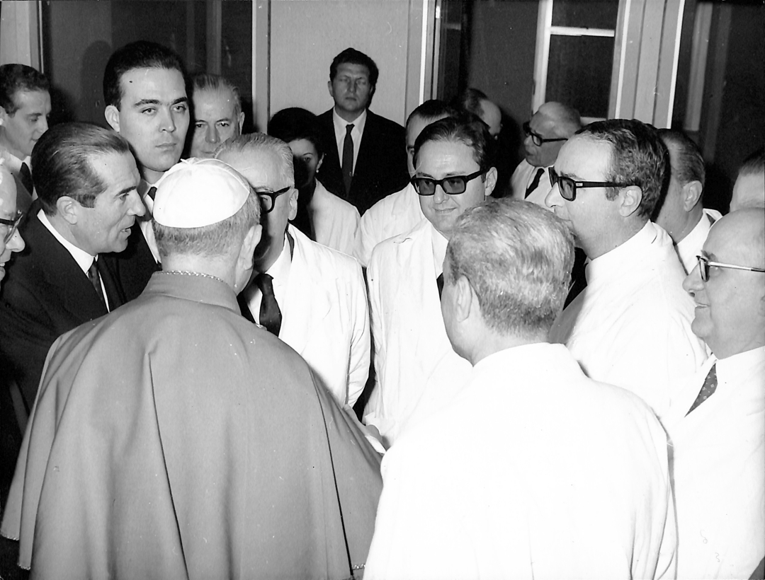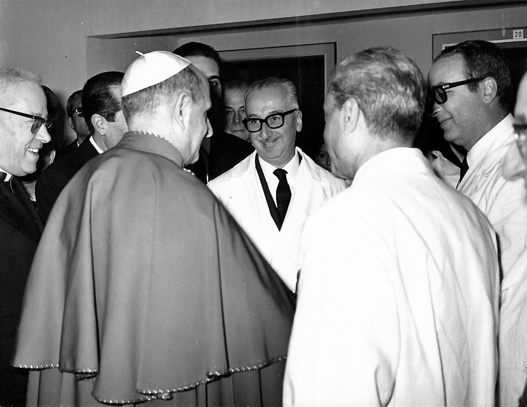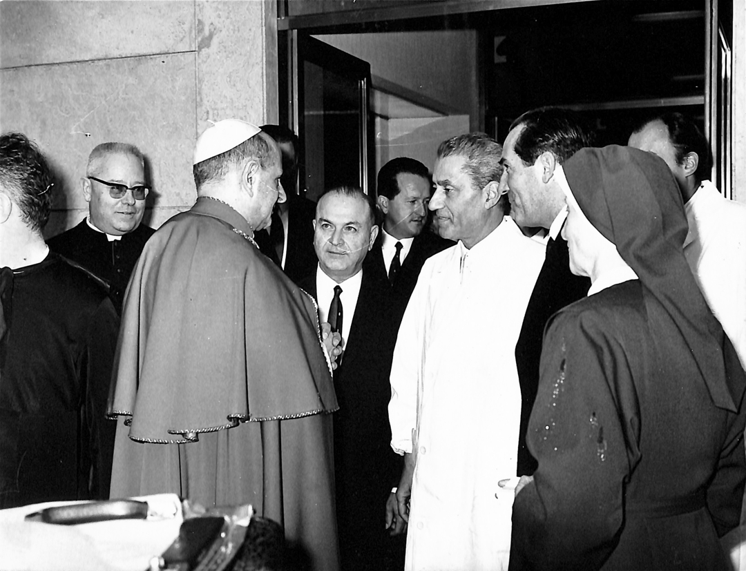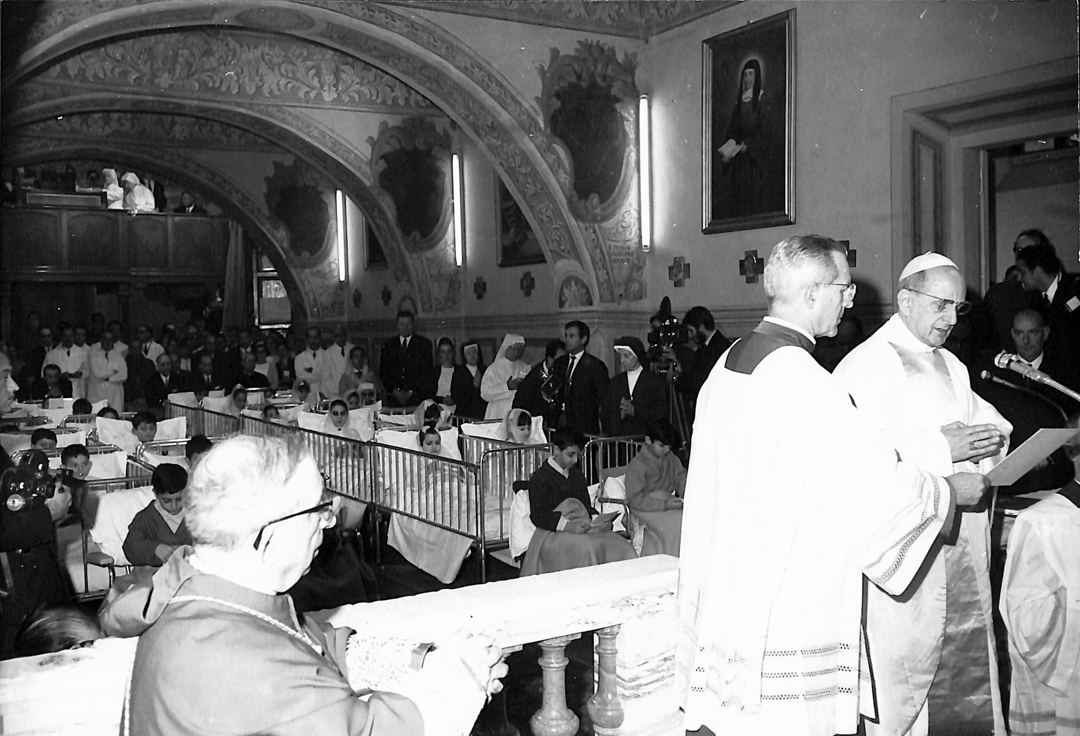 Il Papa Paolo VI durante la visita ufficiale dell'Ospedale