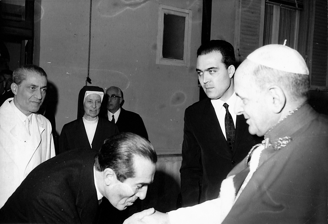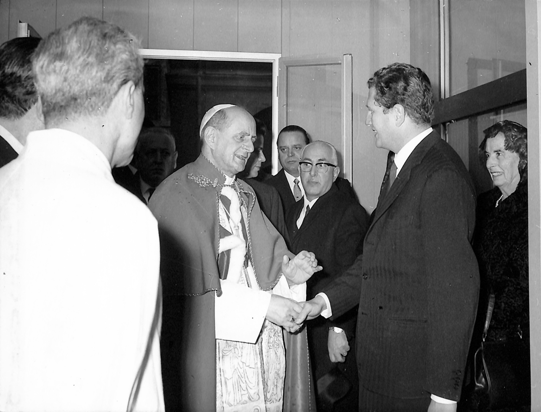 Il presidente dell'Ospedale Bambino Gesù, Giulio Pacelli saluta il Papa Paolo VI